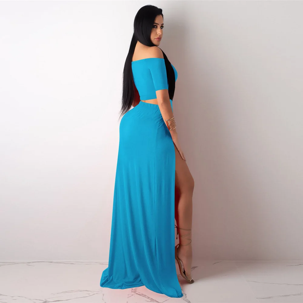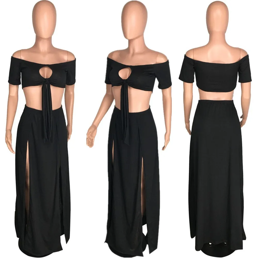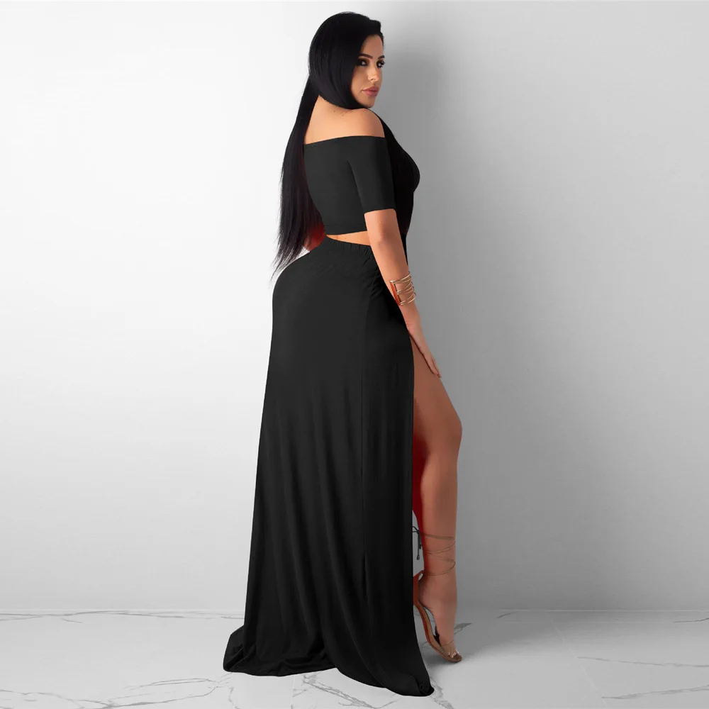 Женское сексуальное платье, комплект из двух предметов, Бандажное платье макси, Vestidos, с открытыми плечами, укороченный топ с высоким разрезом, летние длинные вечерние платья для клуба