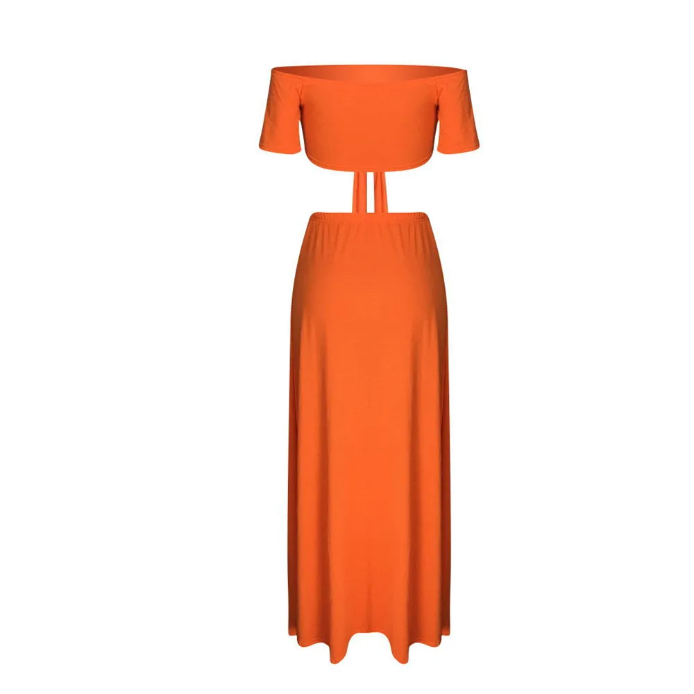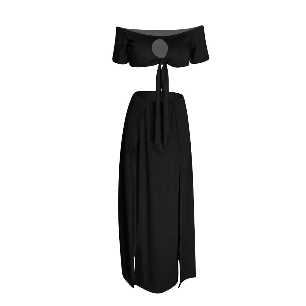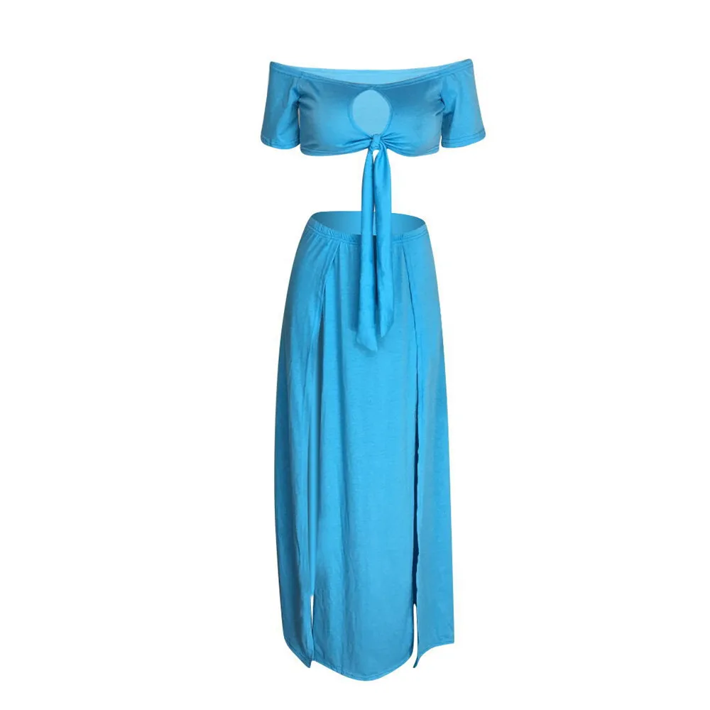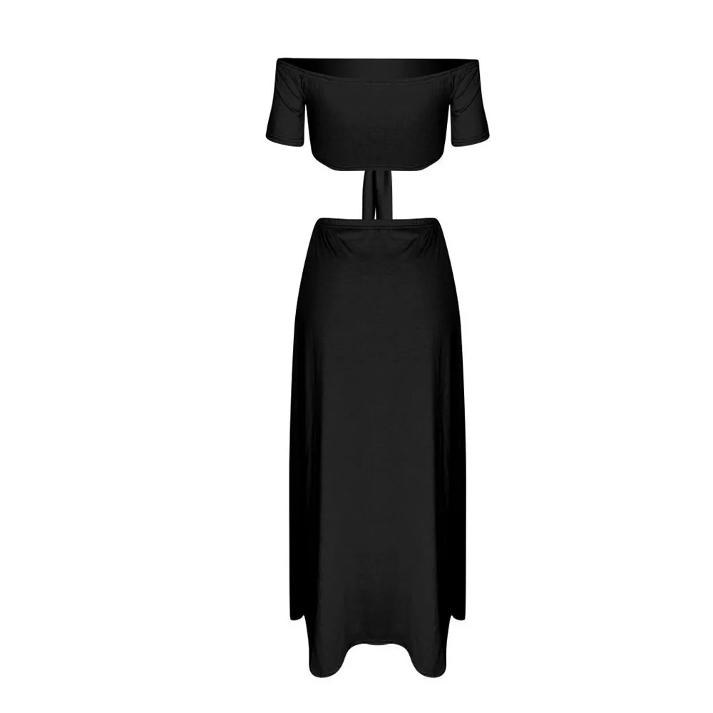 Женское сексуальное платье, комплект из двух предметов, Бандажное платье макси, Vestidos, с открытыми плечами, укороченный топ с высоким разрезом, летние длинные вечерние платья для клуба
