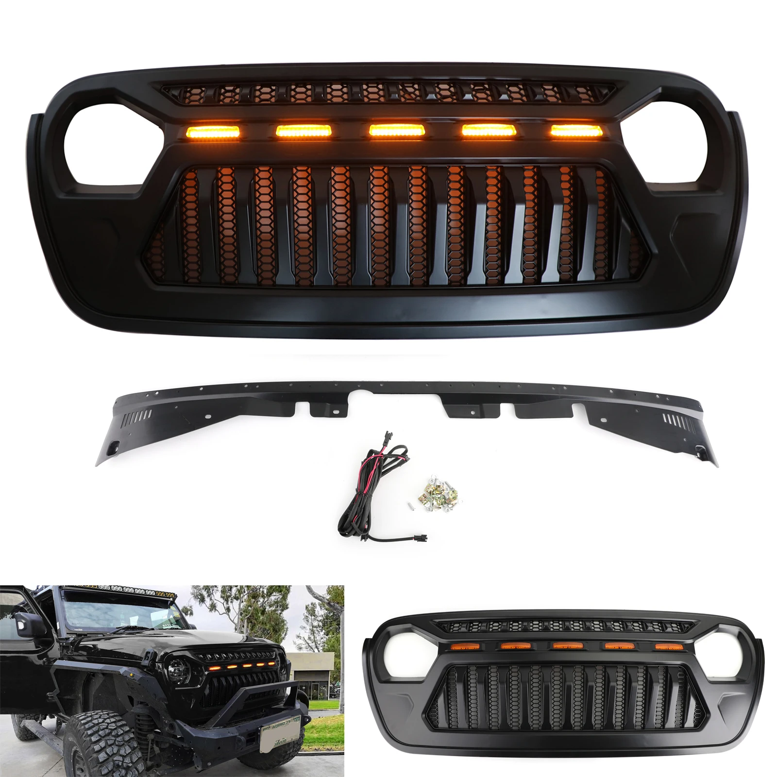 Светодиодная решетка для Wrangler JL 2018 2019 Характеристика: Изготовлен из высококачественного АБС-пластика Придает вашему автомобилю новый стиль и внешний вид Подчеркивает общий вид ваших автомобилей Отличное обновление для вашего автомобиля Также улучшает безопасность, добавляя 5 янтарных светодиодных ламп Особенности: Состояние: 100% новый бренд Тип: передняя решетка Материал: АБС-пластик Цвет: как на картинке Д * Ш: 130*45 см/51,18*17,71" Приспособление для: Для Wrangler JL 2018 2019 В комплект входит: 1х передний комплект для гриляРазмер изделия