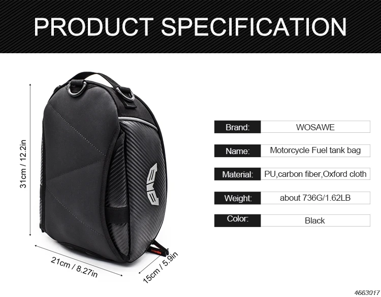 Может использоваться как мешок топливного бака, задний мешок, сумка для хранения шлема, рюкзак, дорожная сумка