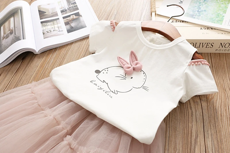 Cartoon Off Shoulder Tops Skirt Children Girl Clothing Summer Clothing Outfits 2Pcs Kids Baby Girls Clothes Set