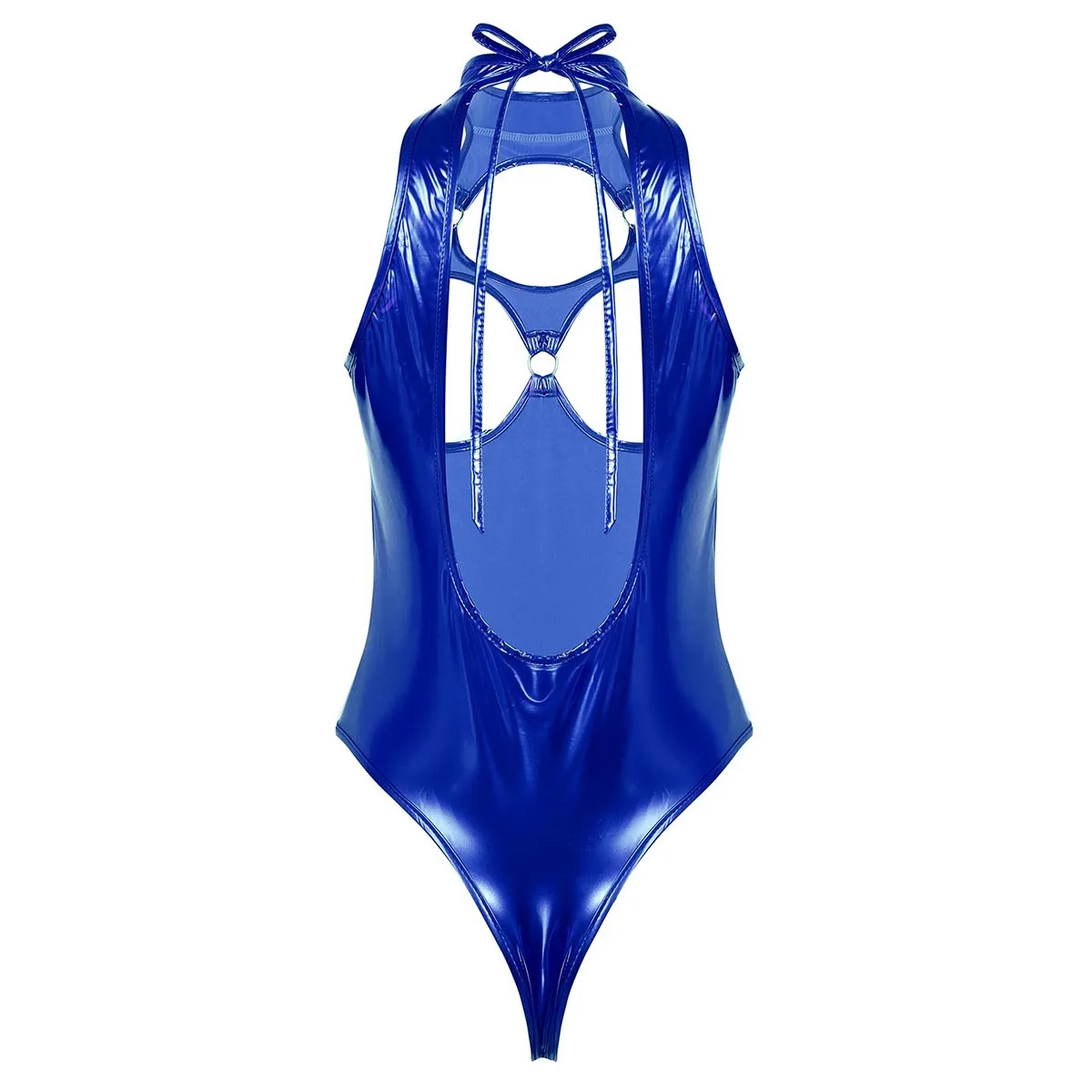 Женское горячее цельнокроеное женское белье из лакированной кожи, боди-трико с тонкими бретельками, мокрый внешний вид.