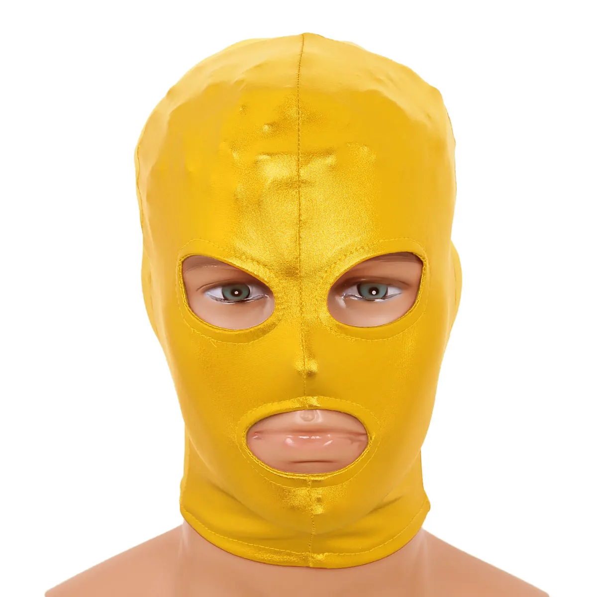 Полностью закрывает голову и шею, с отверстиями для глаз и рта, чтобы вы могли видеть и дышать.