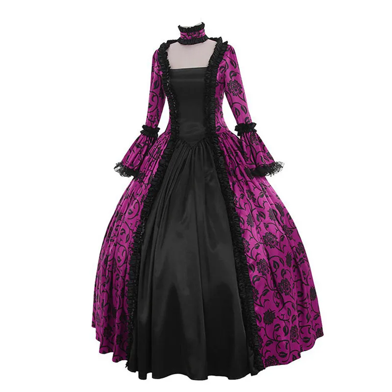 Женское вечернее платье с цветочным принтом в стиле ретро в средневековом готическом стиле; Сезон осень-зима