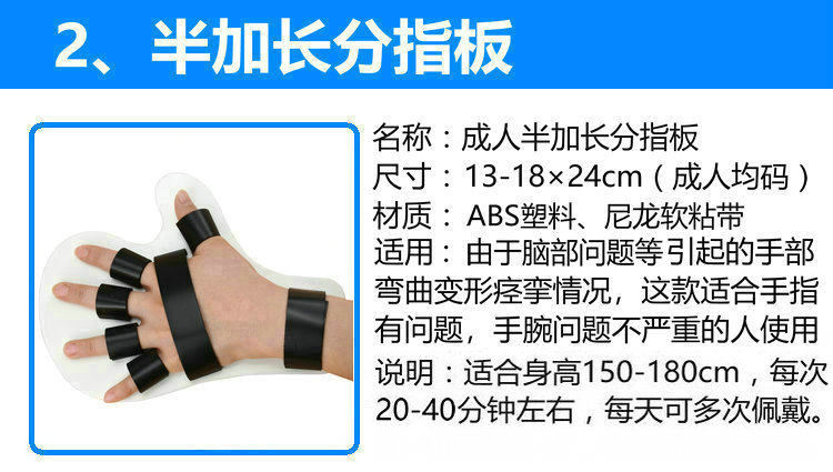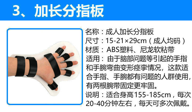 Ингибирование сгибания мышечного спазма и удерживание суставов пальцев и метакарпагалангеального сустава, предотвращение деформации суставов пальцев и метакарпагалангеального сустава. Это отличный и не дорогой реабилитационный продукт, практичность очень высока, может эффективно облегчить инсульт, инфаркт головного мозга, кровоизлияние в мозги пациента. Характеристика: Продукт легкий, легко носить с собой, как правило, носить 20 минут или около того, чтобы иметь возможность поднять палец спазма (свернутый) [можно всегда носить, ремешок может быть скорректирован. Форма-машина для компьютерного управления, край очень гладкий, удобно носить. 1.,Основной эффект:Ингибирование инсульта пальцев или ревматоидного артрита, вызванного деформацией пальцев, для предотвращения сгибания пальцев или атрофии. 2. Методы обучения:1, пальцы будут отделены от удлинения, чтобы держать пальцы в нужном месте. 2 пациента с тяжелым сгибанием пальцев могут быть сделаны другими, чтобы помочь завершить пациентов с мягким сгибанием, может научить метод завершения носки. 3, Примечание:Должны быть в руководстве реабилитации или медсестер на практике. Следуйте принципу «шаг за шагом» и постепенно увеличивайте сложность или время обучения в соответствии с конкретными обстоятельствами обучения. 4. Уход за грифом1 часть должна быть чистой, регулярно использовать чистую мягкую ткань. 2. Продукт должен храниться в сухом и проветриваемом помещении без коррозионных веществ, а не по весу или столкновению.