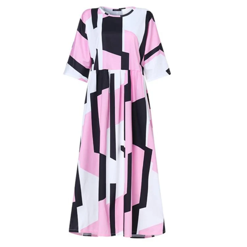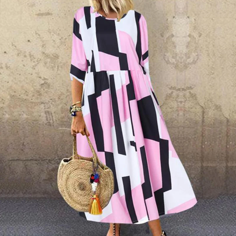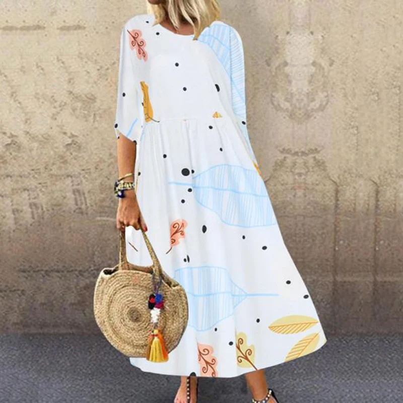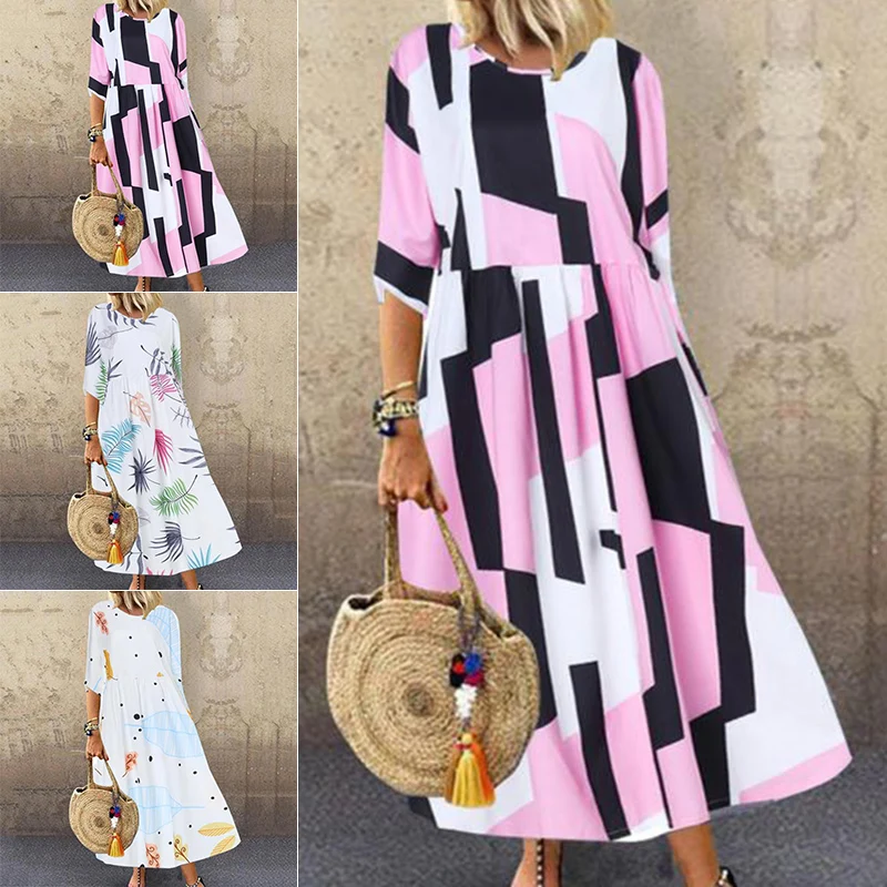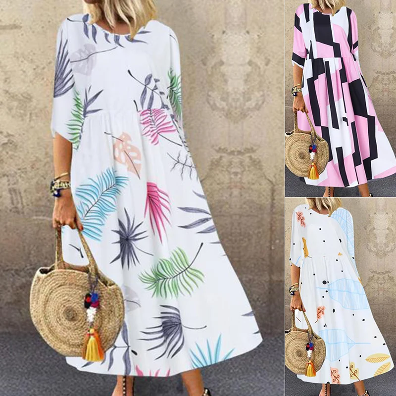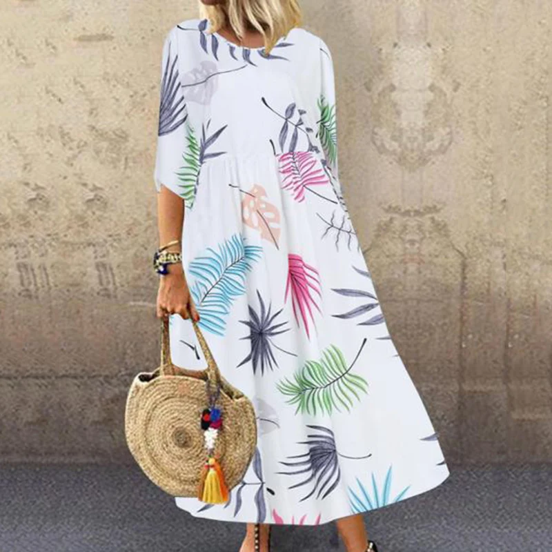 * Описание товара: женское, повседневное, свободное, круглый вырез, средний рукав, принт, пляжные вечерние платья