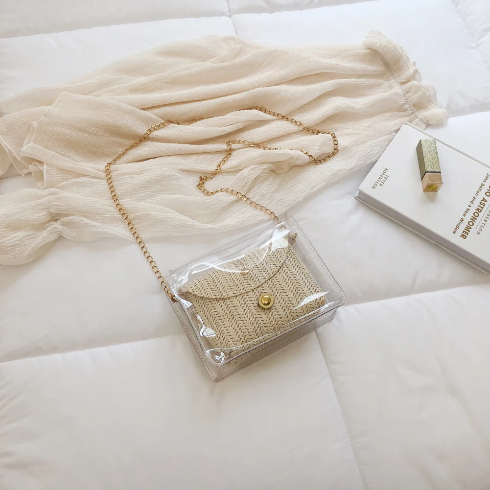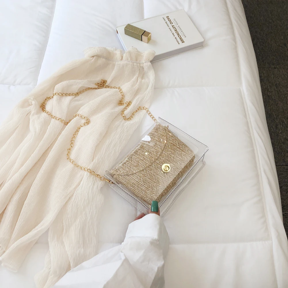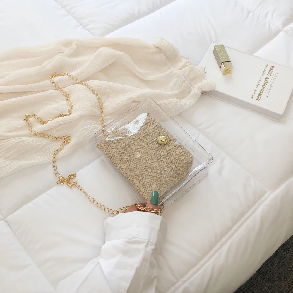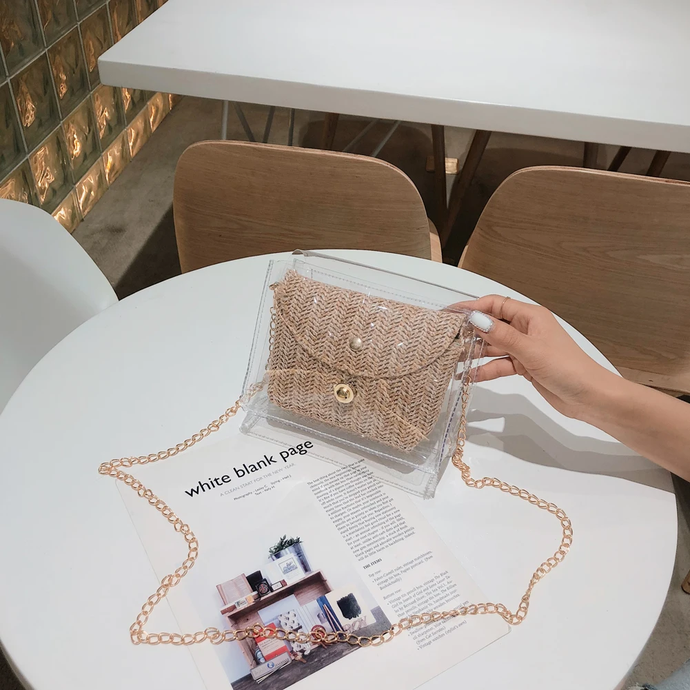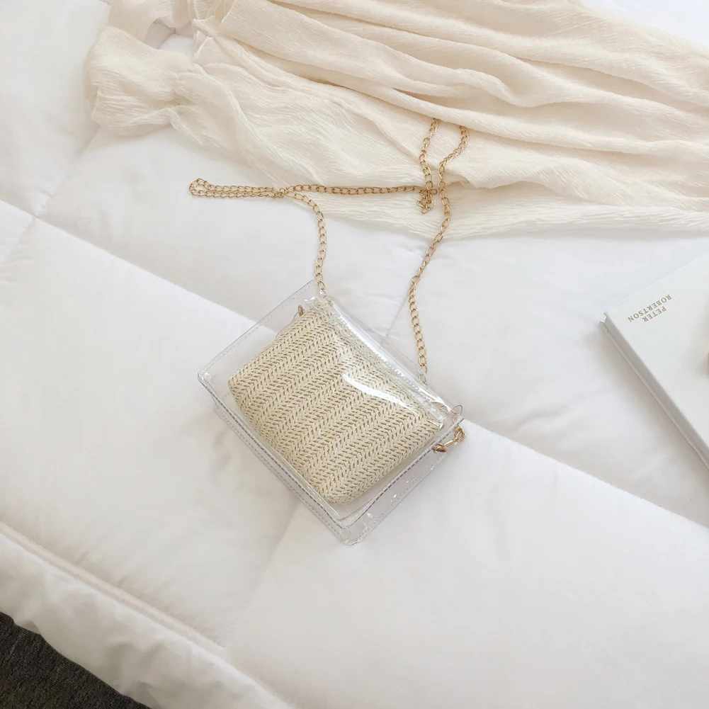 Здравствуйте! Добро пожаловать в наш магазин! Новая мода, женщины; Лето; пляж сумка Соломенная Сумка из ротанга 100% абсолютно новый и качественный! Стиль: прозрачная соломенная сумка Изысканный: простой, но модный; Благородный дизайн!