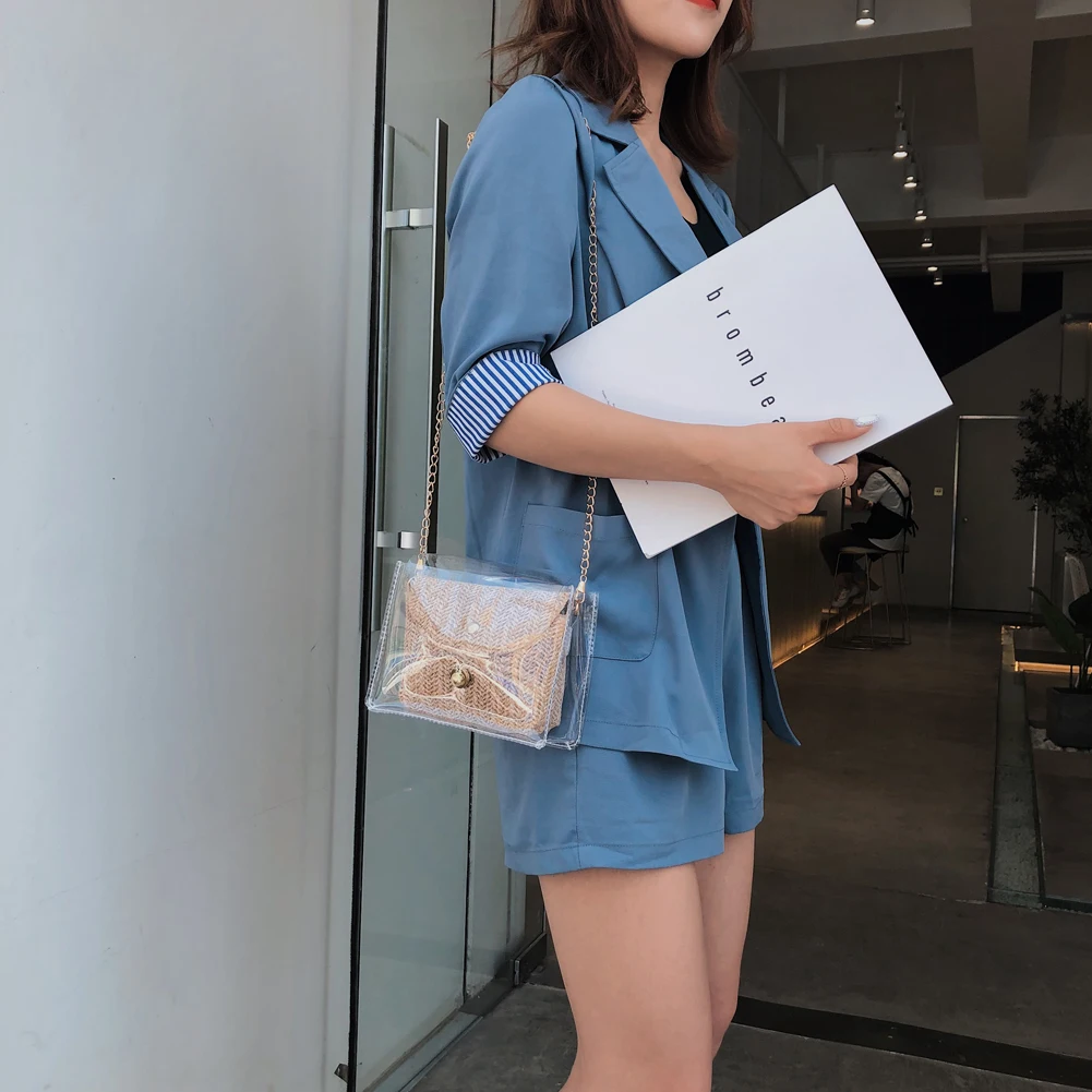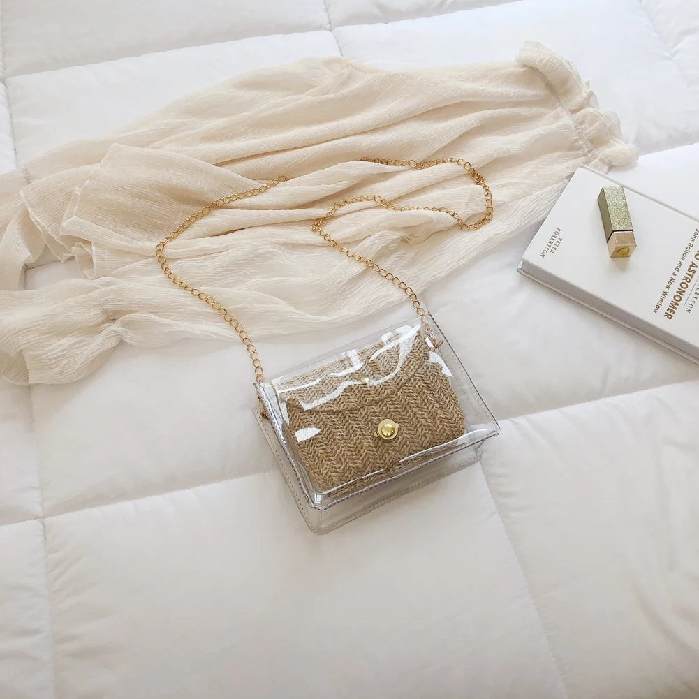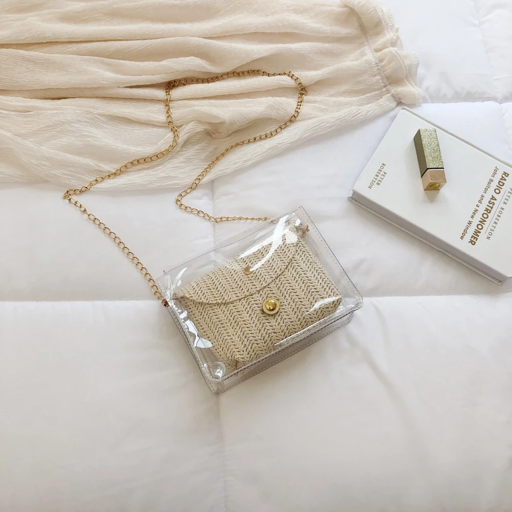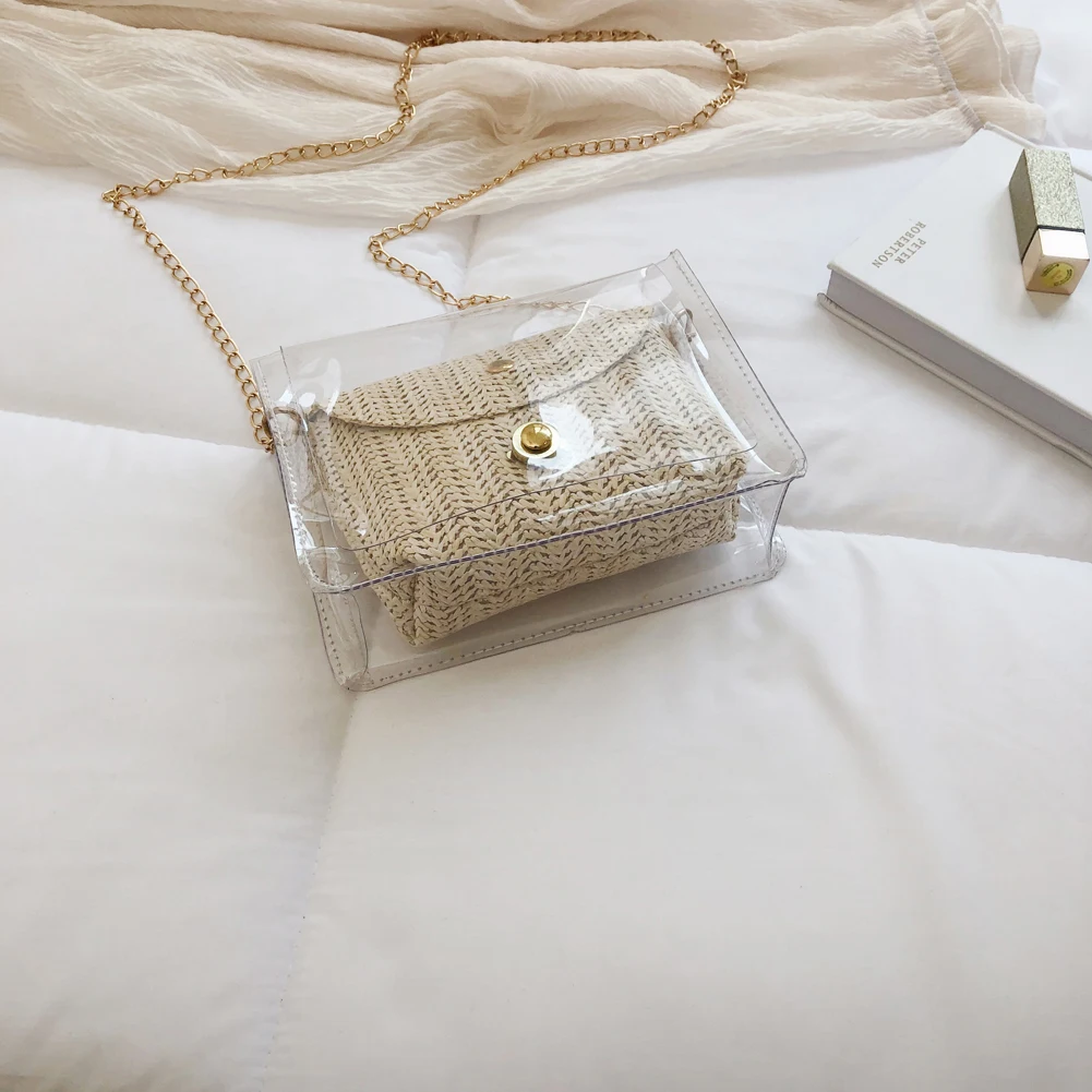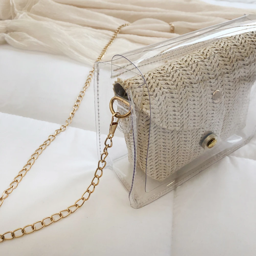 Здравствуйте! Добро пожаловать в наш магазин! Новая мода, женщины; Лето; пляж сумка Соломенная Сумка из ротанга 100% абсолютно новый и качественный! Стиль: прозрачная соломенная сумка Изысканный: простой, но модный; Благородный дизайн!