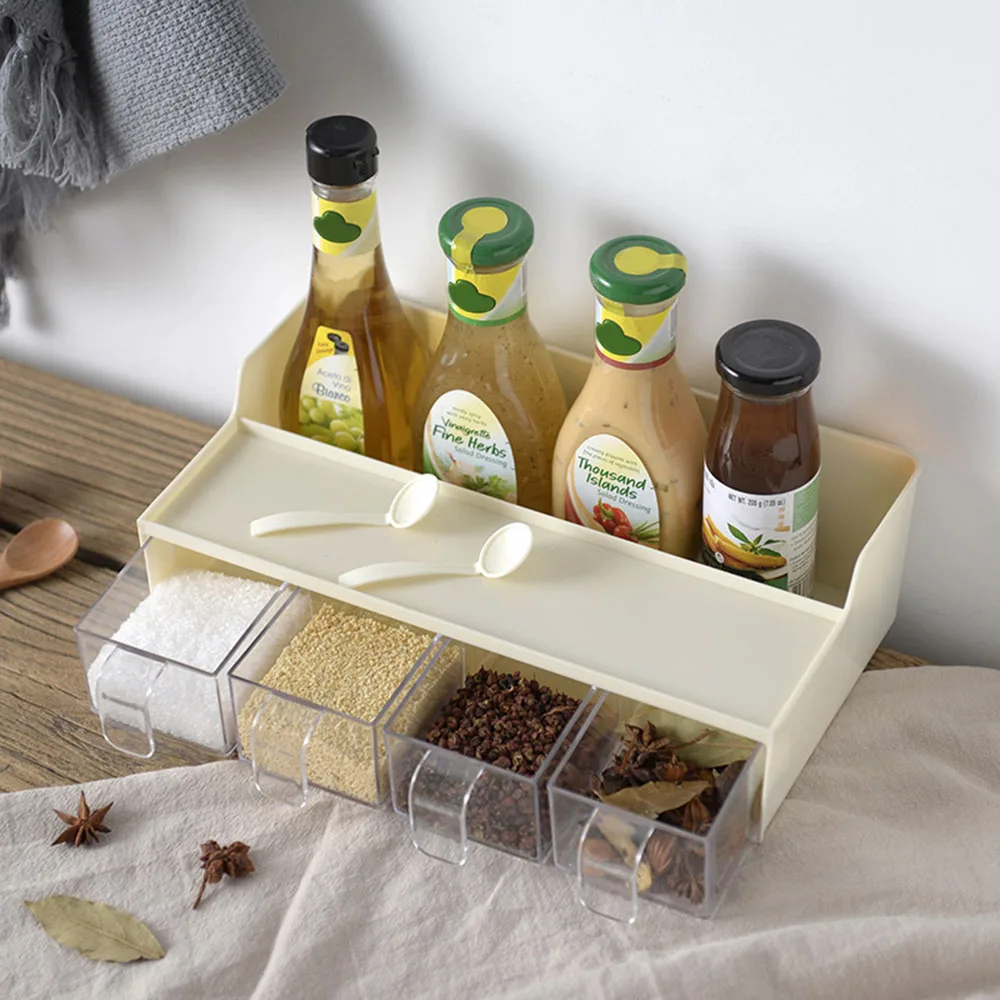 Large-capacity storage, can be placed in a small spoon (included), 4 seasoning boxes, smooth bottom