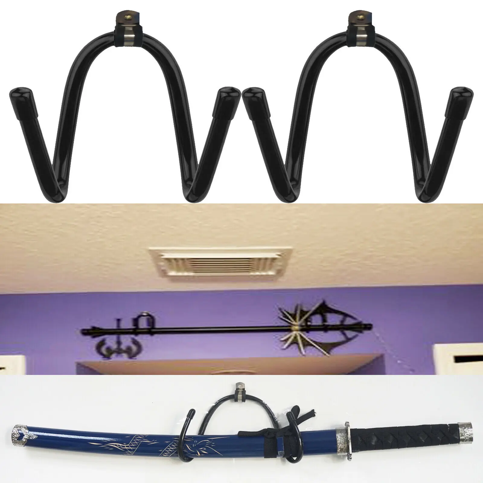 100% новые и качественные. Количество: 2 шт. Удерживайте 2 мечи. Мечи в комплект не входят. Универсальный, подходит для всех видов мечей. Благодаря гибкой стойке, вы можете отрегулировать стойку под свои мечи (мечи в комплект не входят) Гибкие и очень прочные, гибкие и легкие в форме, выдерживают вес менее 20 фунтов и очень прочные. Нет царапин, резиновая защита. Вешалка обернута резиной, поэтому, пожалуйста, не беспокойтесь о царапинах. Универсальное использование-подходит для вашего меча, или для тяжелых скейтбордов, тяжелых сноубордов, гарнитуры VR и т. д. Жду вашего воображения.