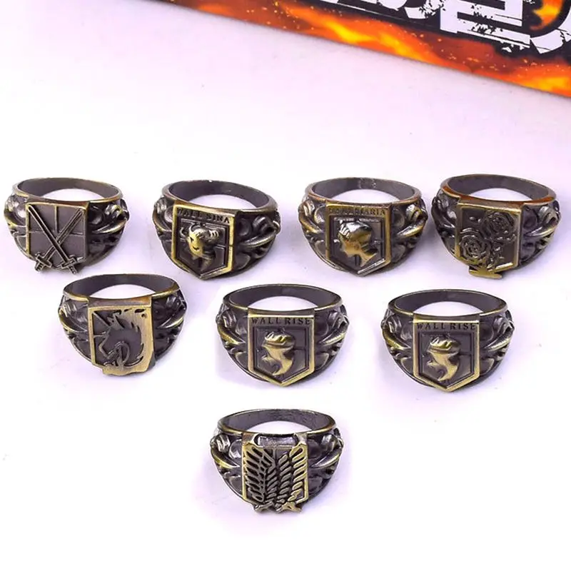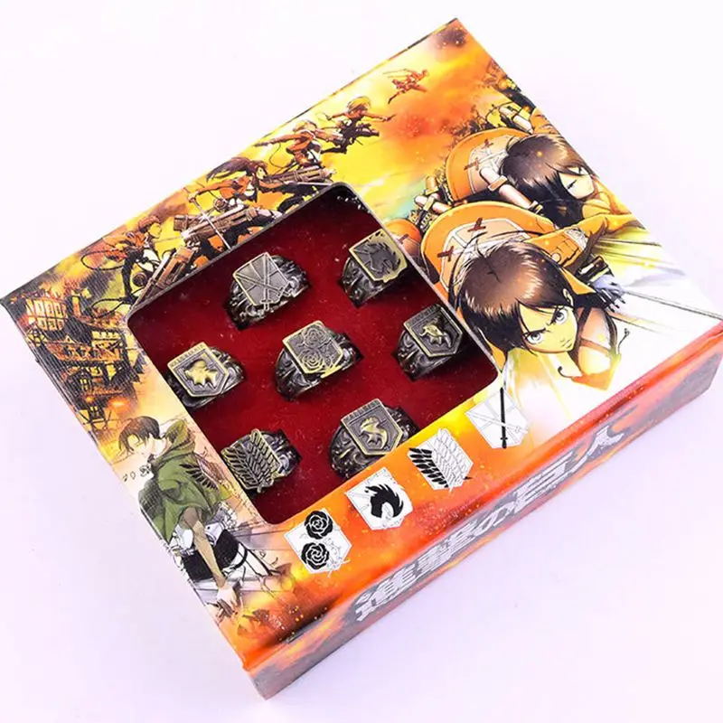 Материал: сплав цинка Диаметр около 1,8 см Посылка включает в себя: Набор колец «атака на Титанов»-1 шт.