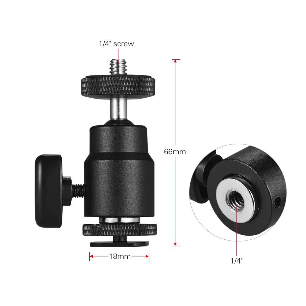 Шаровая Головка поставляется с 18,5 мм Стандартный Холодный башмак для ног в нижней части, с фиксирующей гайкой и 1/4 "стандартный винт отверстие, поддержка расширения.