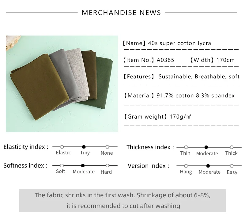 Наименование товара: 40s хлопок, спандекс, трикотажная ткань