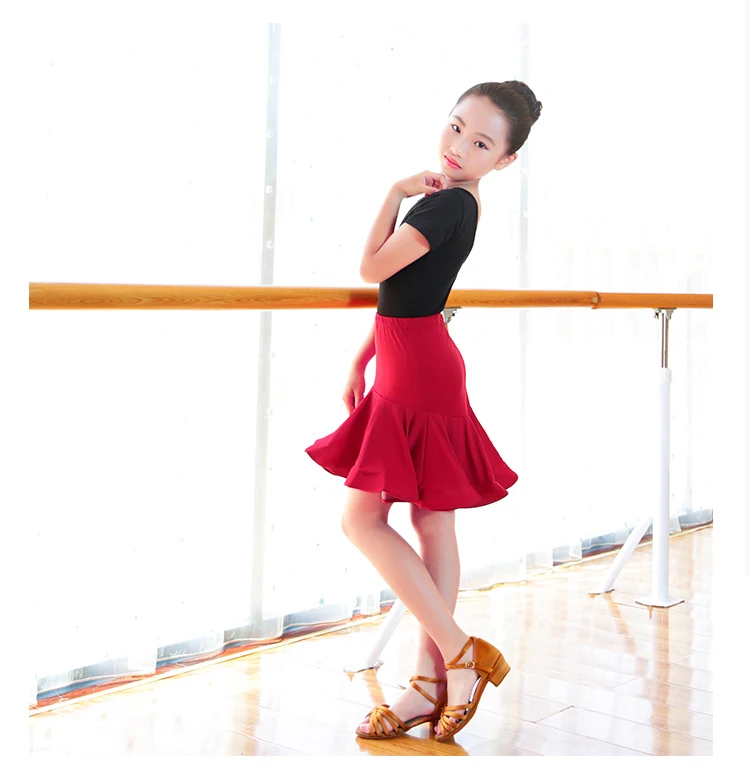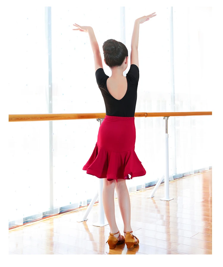 Гимнастический купальник с короткой юбкой платье для латинских танцев для девочек Детская Одежда для танцев Chacha & костюм для румбы 4 цвета E0001.