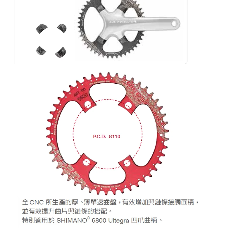 Fouriers R110 / 4 PCD 110BCD круглый дорожный велосипед узкое широкое кольцо 40T-48T Велосипедное колесо Ultegra 6800 11 скоростной коленчатый набор