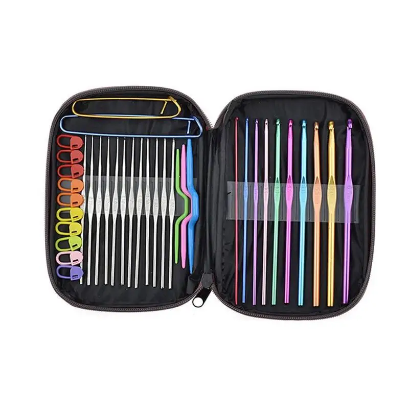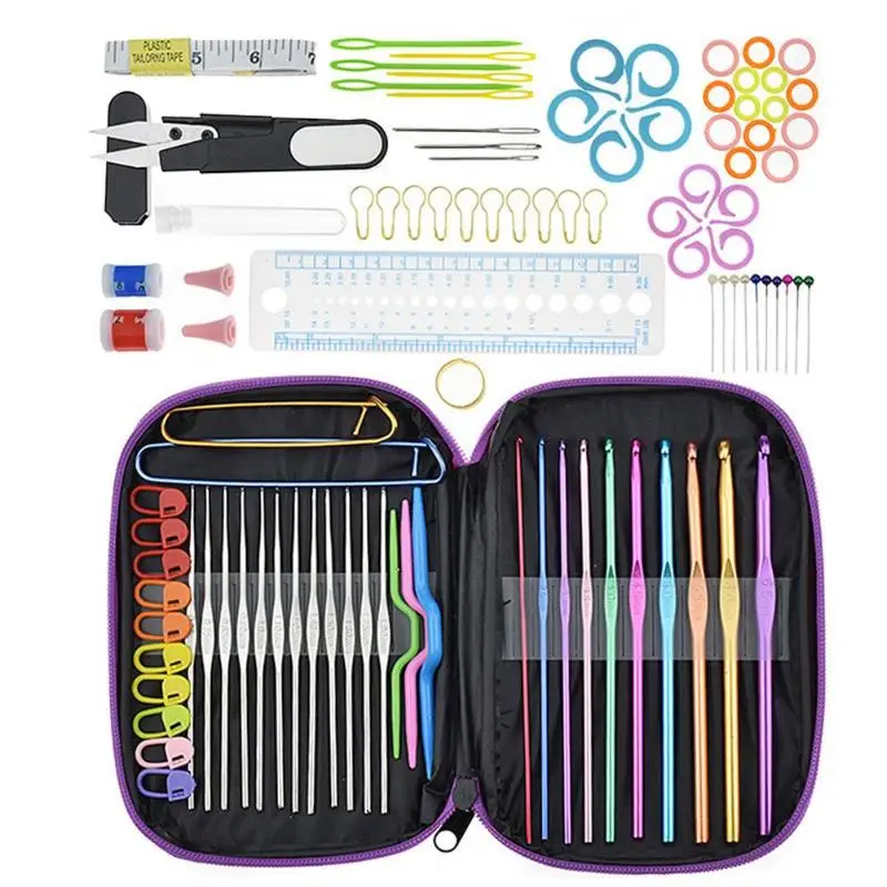 10 цветных вязаных крючком12 серебряных крючков 1 х сумка для вязания крючком 1 х Вязание крючком для измерения белой линейки 1 ножницы 1 х линейка ленты 1 х наперсток 2X1 большой 1 маленький счетчик 2 X маленький штыревой колпачок 2 X металлическая алюминиевая кнопка (1 большой, 1 маленький) 3 X большая металлическая игла для глаз 3 х пластиковые спицы 6 X (два типа) пластиковая швейная игла 10 х разноцветных позиционирующих бусин 10 X Золотая булавка в форме тыквы 10 X пластиковая кнопка 10X2 типа колец для запятых 15X3 типа небольших круглых отметок