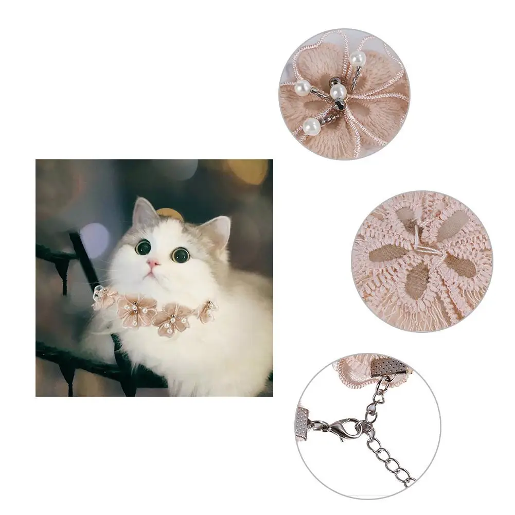 Новый ошейник для домашних животных, ожерелье с кружевным цветком, регулируемый ошейник с пряжкой для кроликов и маленьких домашних животных, милое украшение