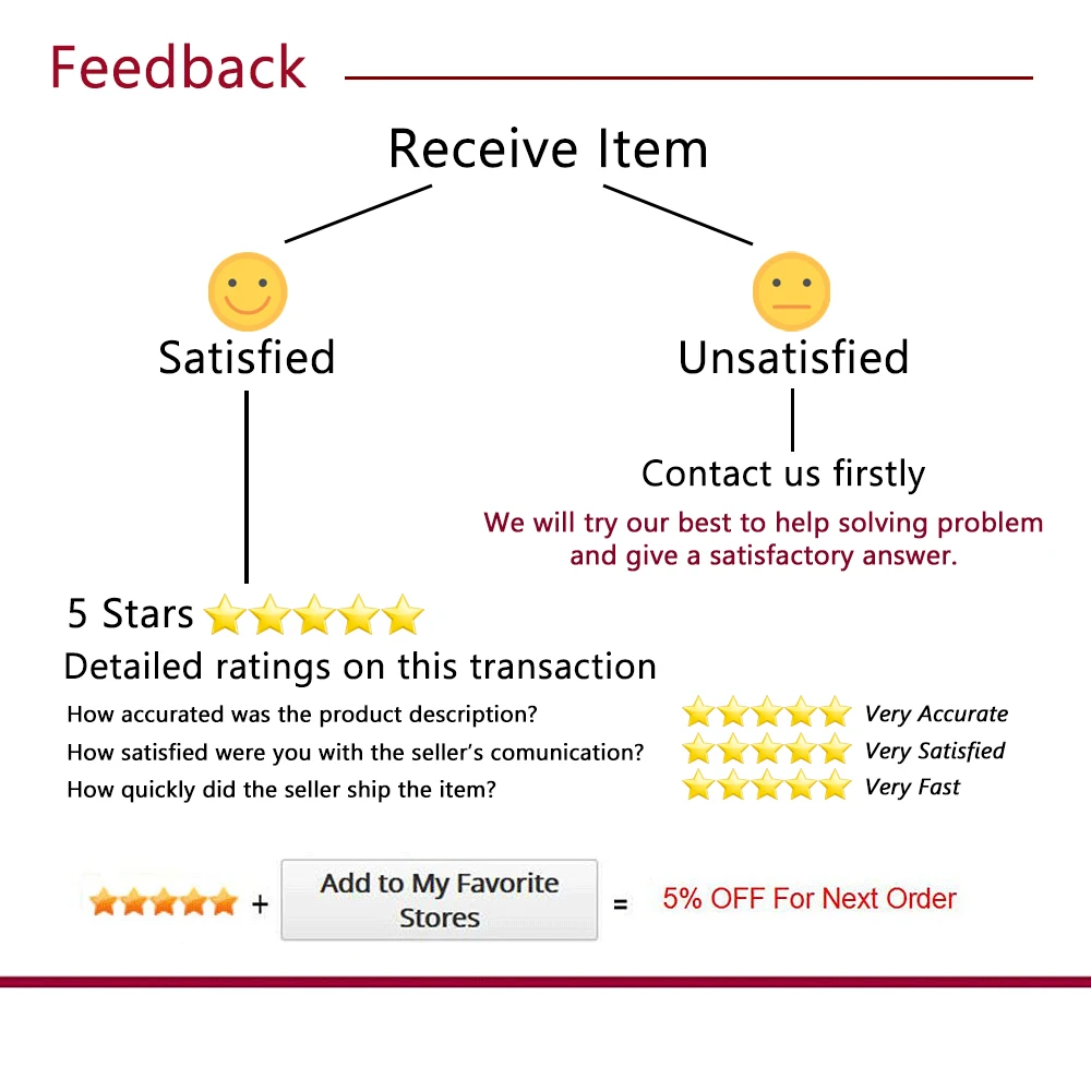 Любые новые клиенты оставляют нам 5 звезд, хорошие отзывы и фотографии, он получит 5% скидку в следующем заказе!