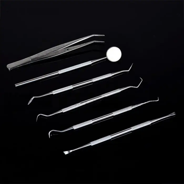 6-в-1 Набор инструментов для стоматологии из нержавеющей стали, содержит проводник, зеркало для рта, зубной скалер и пинцет.