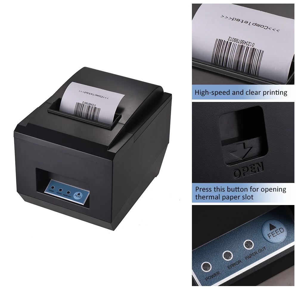80 мм Термальный чековый принтер поддерживает управление денежным ящиком, совместим с ESC/POS команды печати.