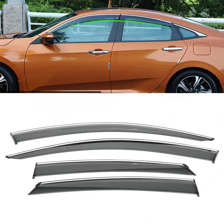 Козырьки бокового окна, козырьки от солнца и дождя для Honda Civic 16-18 (дымчатые), 4 шт.