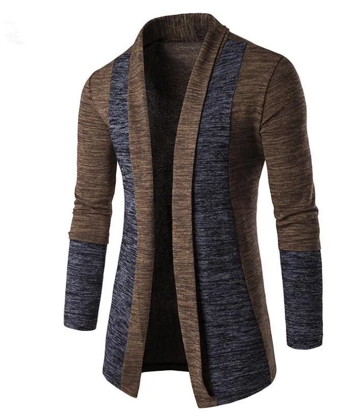 Мужской кардиган хлопковый мужской свитер модный в стиле пэчворк с длинным