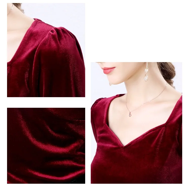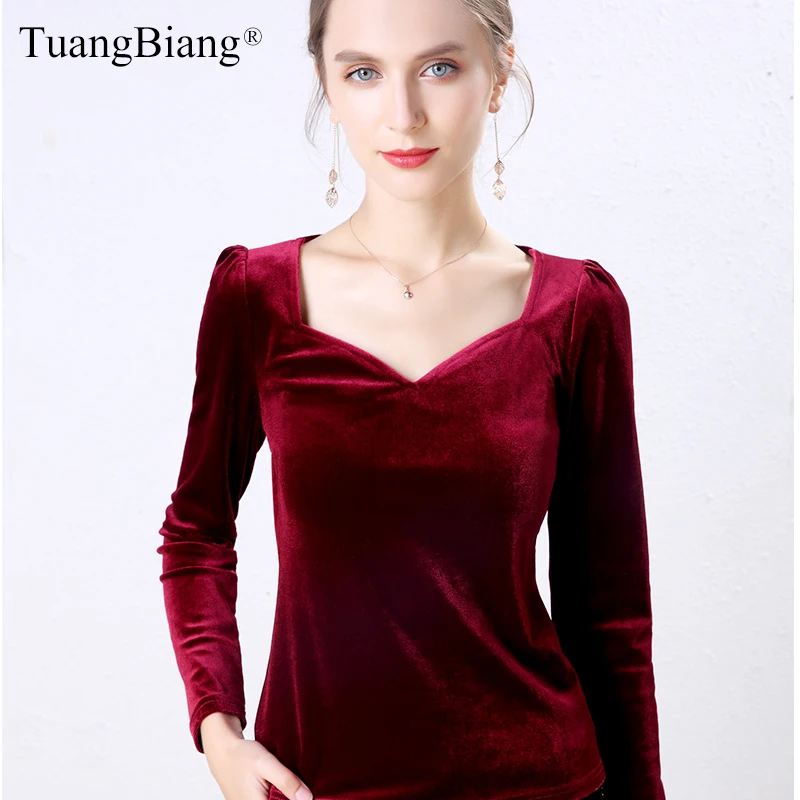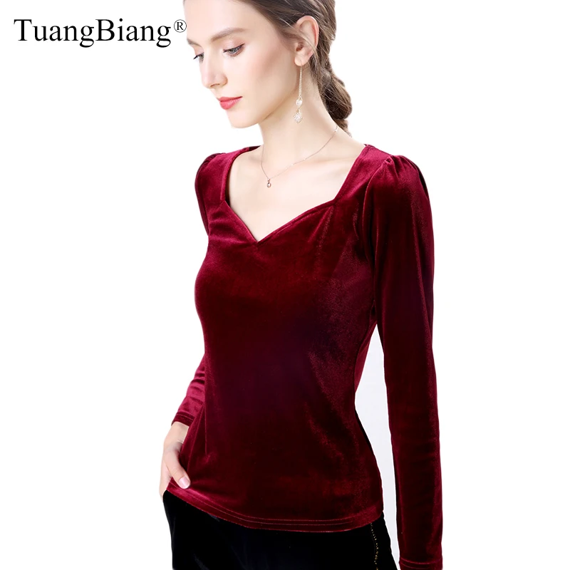 Осенние бархатные винтажные женские футболки с длинным рукавом 2020 Femme с v-образным вырезом сексуальные винно-красные футболки Топы женские тонкие Зимние новые черные футболки