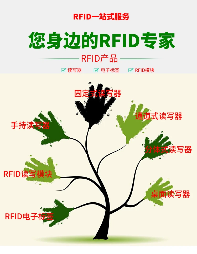 Настольный считыватель: небольшое устройство чтения, которое работает на электронных тегах в офисной среде. В основном используется для электронных тегов (передатчик), идентификации документов/купюр и т. Д.