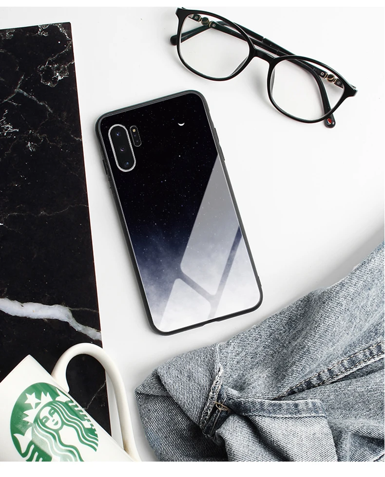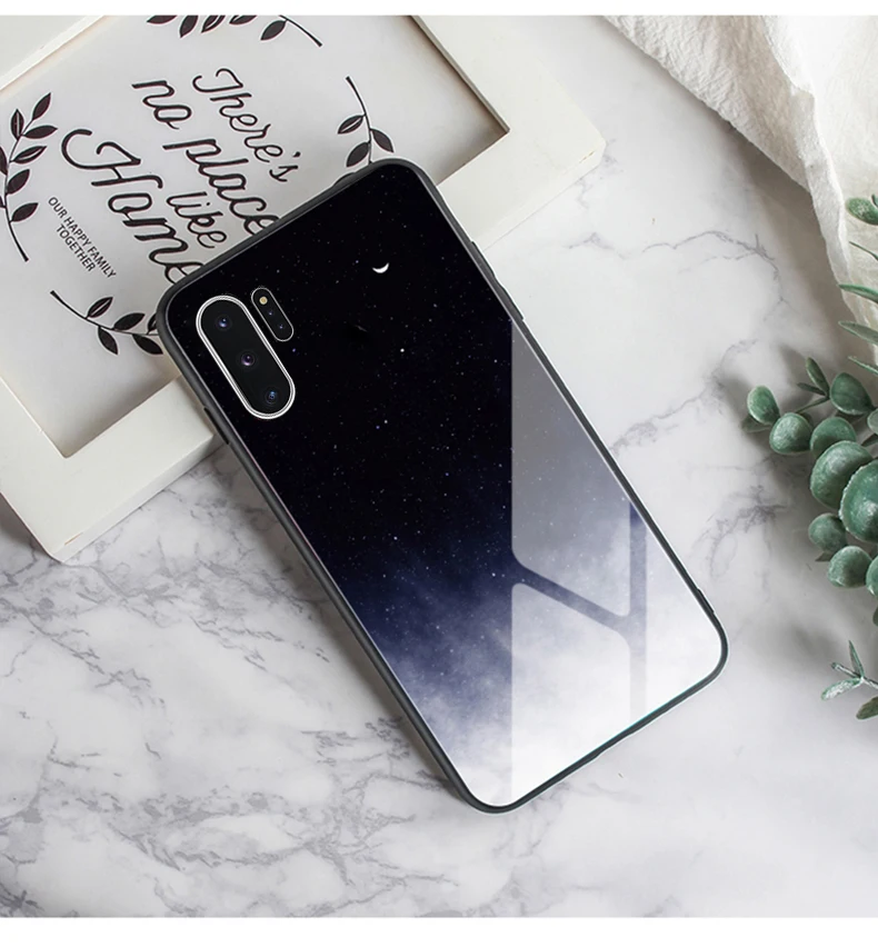 Samsung Galaxy Note 10 Samsung Galaxy Note 10 Plus Пункты продажи> 1. Материал: Закаленное стекло + мягкая силиконовая рамка из ТПУ + Жесткий ПК 2. Особенности: Роскошный ультра тонкий глянцевый защитный чехол из закаленного стекла для телефона 3. Функция: Защита камеры + противоскользящая, защита от отпечатков пальцев, ударопрочный, пыленепроницаемый, ударопрочный, противоударный, грязеотталкивающий, устойчивый к царапинам Посылка в комплекте> Чехол для телефона * 1