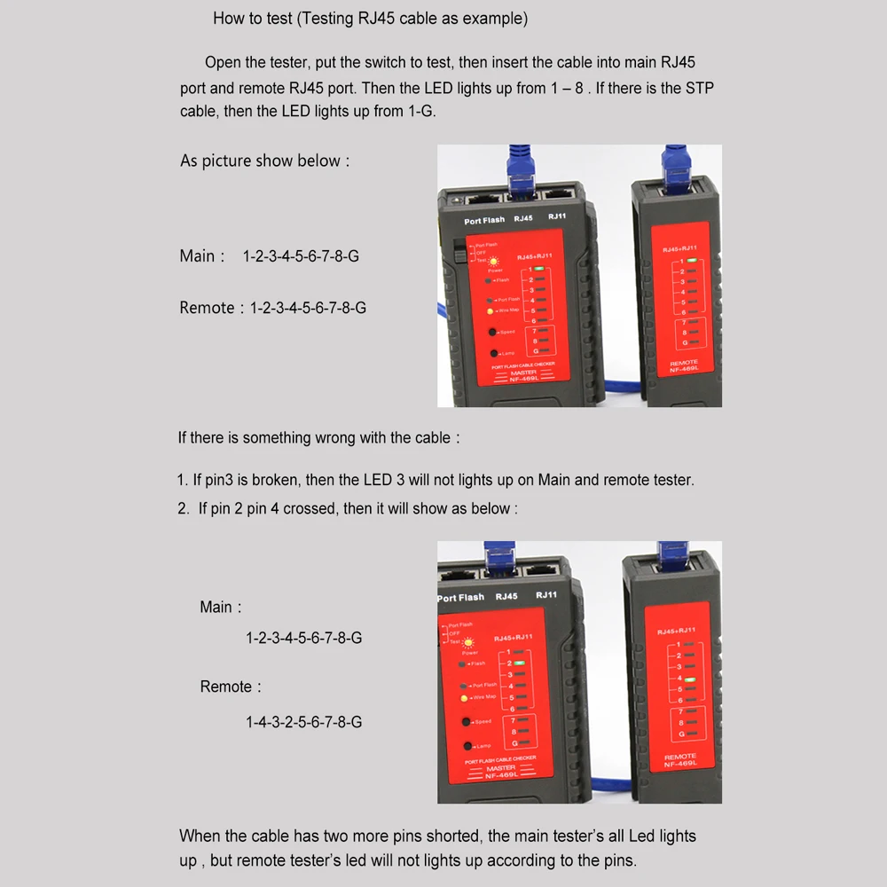 Тест RJ45, RJ11 телефонных кабелей и сетевых кабелей быстро.