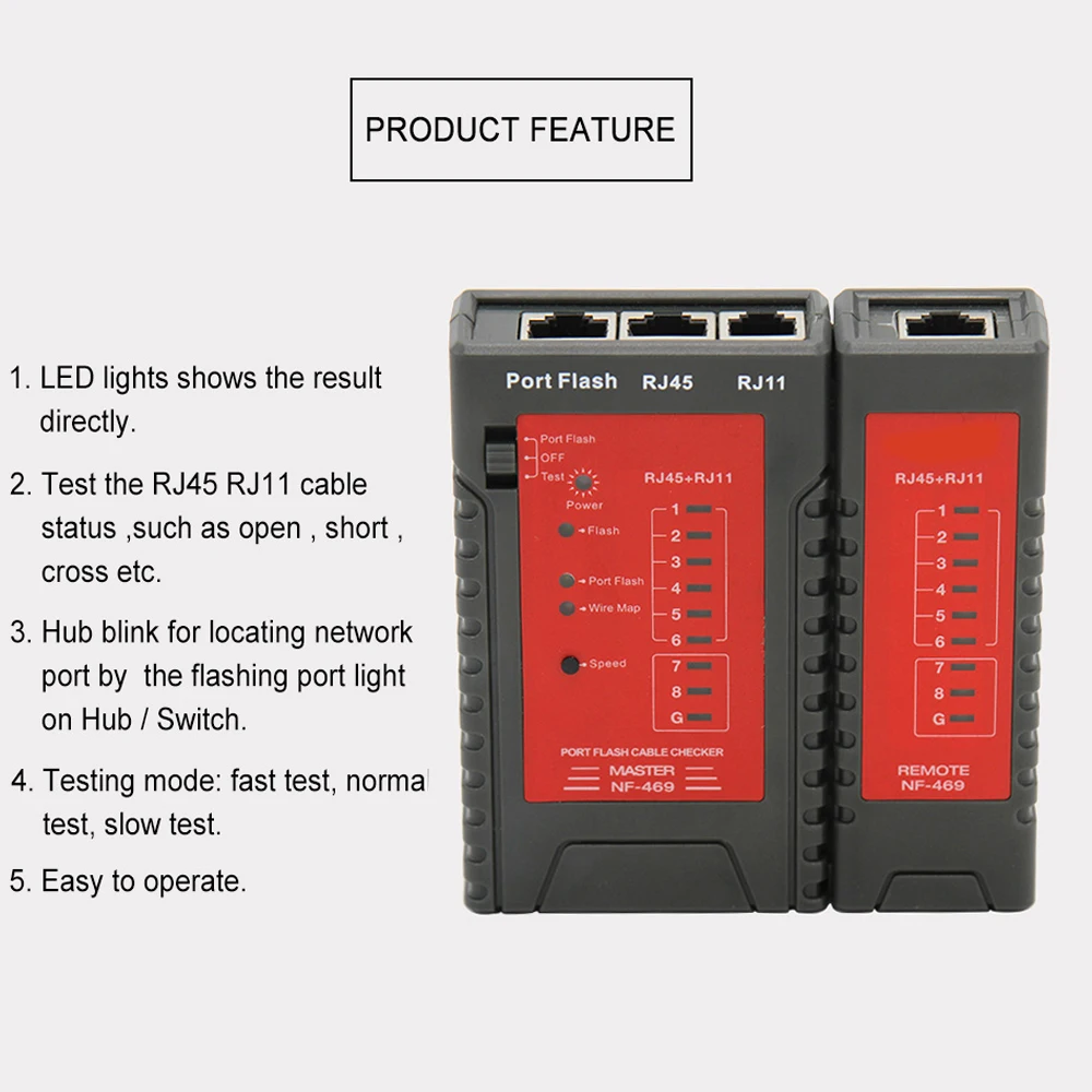 Основные функции: Тест RJ45, RJ11 сетевой LAN и кабель с фиксированной телефонной линией