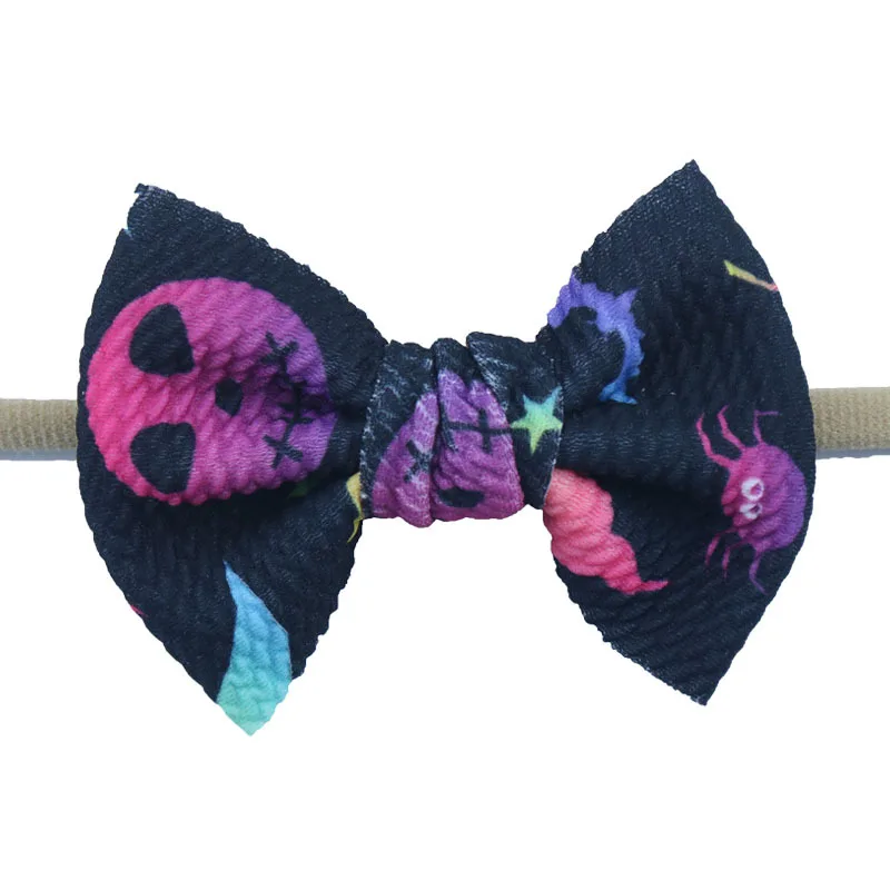 Нейлоновые детские повязки для девочек ручной работы, Большие Детские Луки для волос на Хэллоуин, детская чалма ободки для девочек, аксессуары для волос для девочек