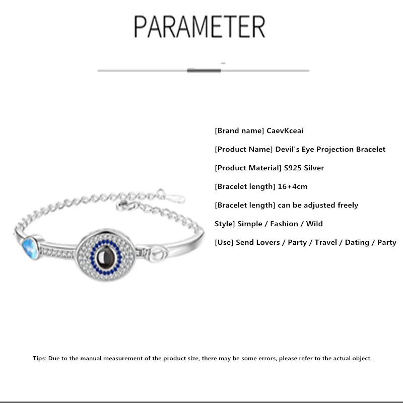 Это браслет из стерлингового серебра S925 пробы. Этот красивый браслет из стерлингового серебра 925 пробы с изящными вырезанными вручную глазами демона, и центр украшен классическим нано-резным камнем, проецируемым на 100 языках «I love you» Название бренда: CaevKceai Название продукта: браслет с проекцией Глаз Дьявола Материал изделия: Серебро S925 + циркон высокого качества Длина браслета: 16 + 4 см Длина браслета: можно регулировать свободно Посылка: 1х салфетка из серебра 1х браслет с проекцией Глаз Дьявола