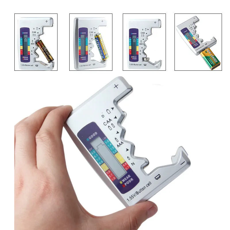 Диапазон тестирования: C, AA, AAA, D, N, 9 В (6F22) батареи и 1,55 в кнопочный элемент