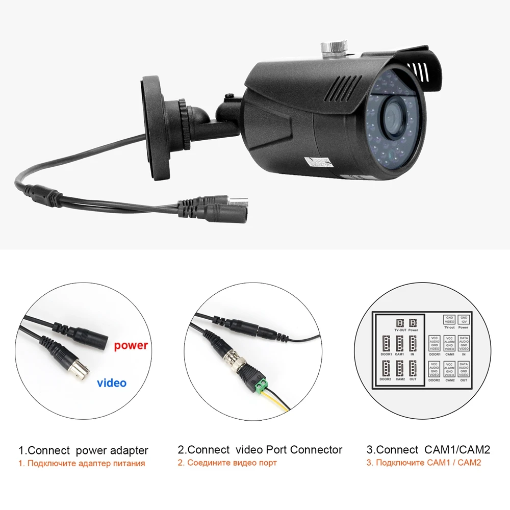 Датчик камеры: 1/3 CMOS , 1200 TVL Угол обзора камеры: 130 ° Ночное видение: инфракрасное ночное видение Характеристики: непромокаемые, пылезащитные и антивандальные Источник питания: поставляется с внутреннего монитора Материал: алюминиевый сплав