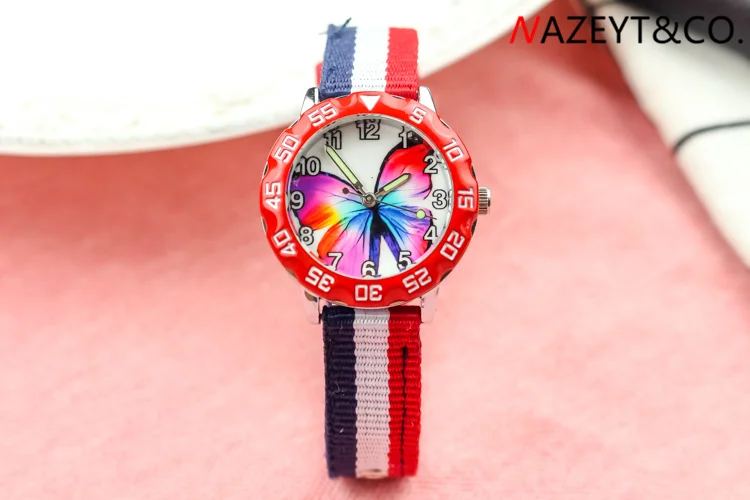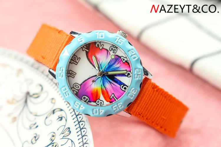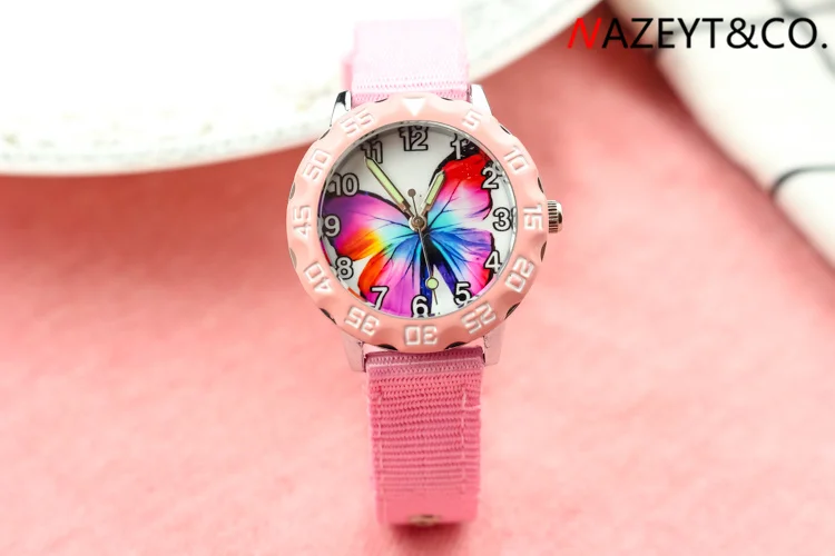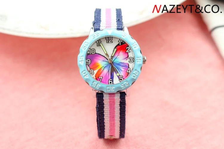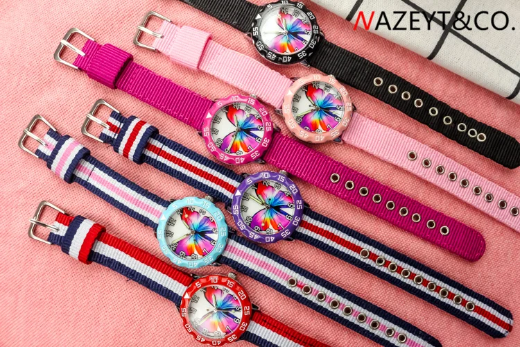 dropshipping cartoon 3D butterfly children watch little boys girls luminous hands sports quartz wristwatch kids nylon gift clock