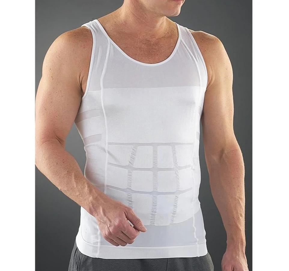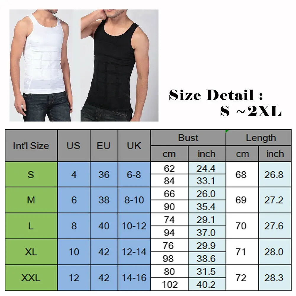 Mens body shaper for slimming tummy waist vest shirt, low round neckline, sleeveless. Slimming under shirt features firming panels to help trim and tighten your back and stomach.Soft material, elastic and smooth. Perfect for shaping and slimming your bodies, making you look thinner. * Ткань изделия: полиэстер * Item Цвет: Whitelack (As pictures show) * Item Condition: 100% абсолютно новый * Package Contents:1*Бак Size: