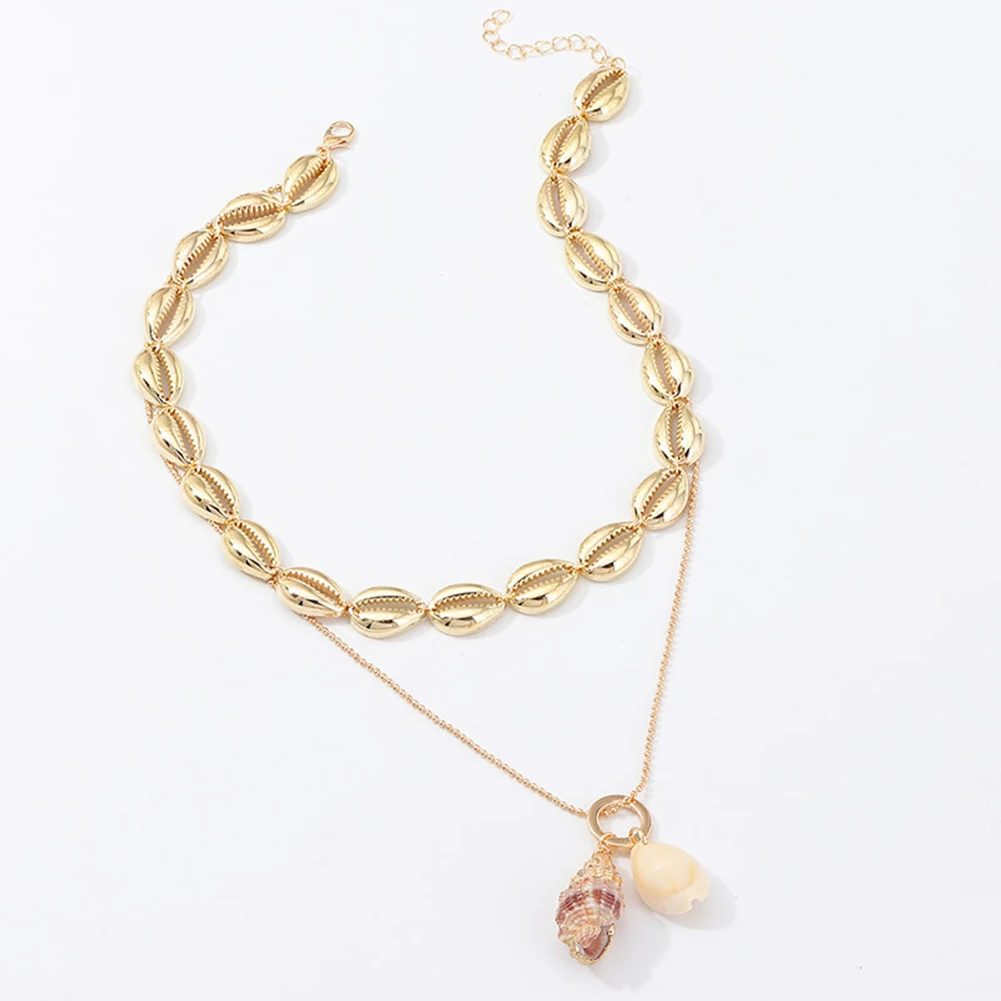 Женская летняя пляжная богемная двухслойная Морская ракушка чокер кулон ракушка цепочка ожерелье новые ювелирные изделия женские аксессуары