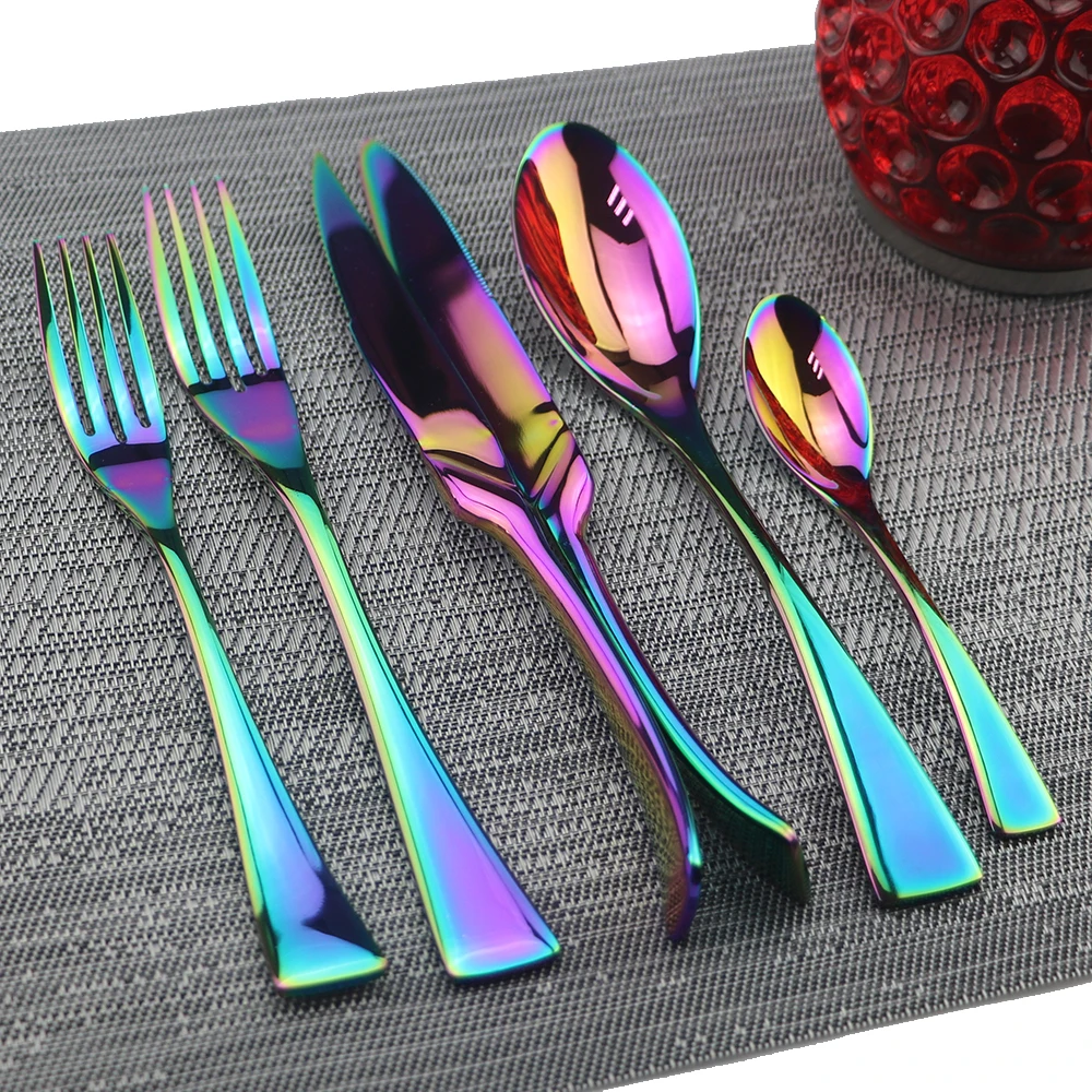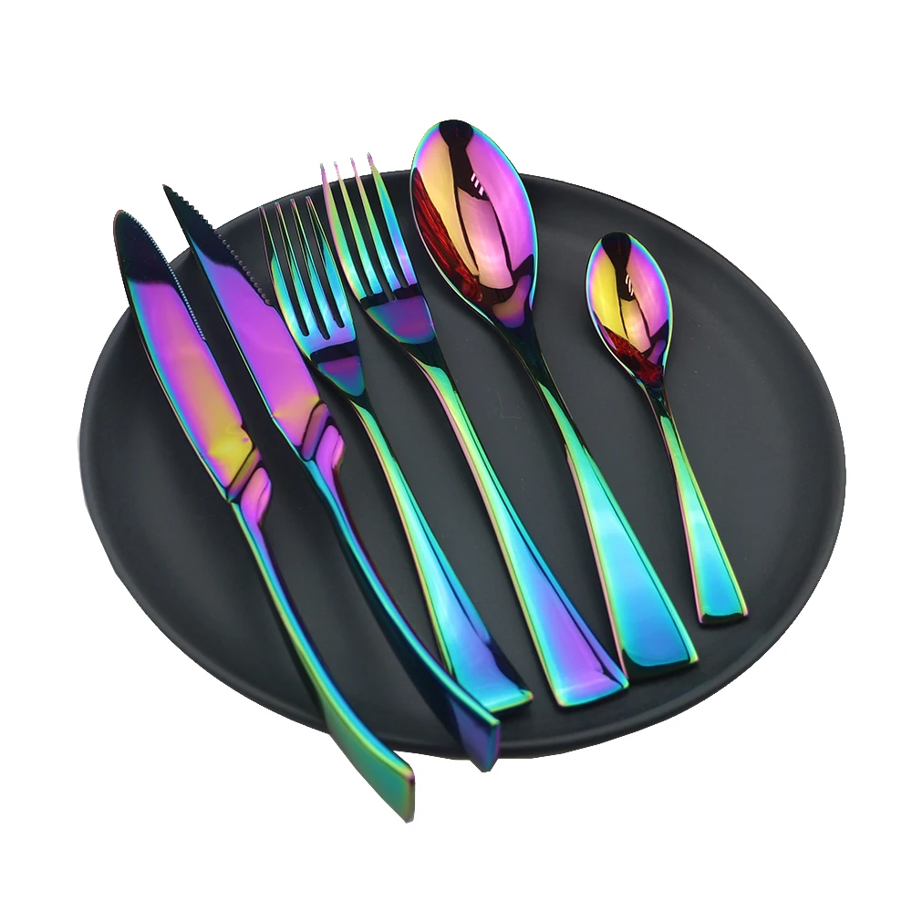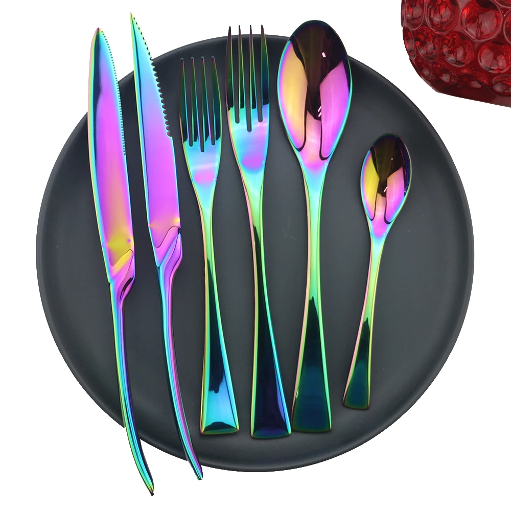 Радужный роскошный набор посуды 6 шт. 304 нержавеющая сталь столовые приборы нож вилка ложка десертный нож вилка чайная ложка посуда