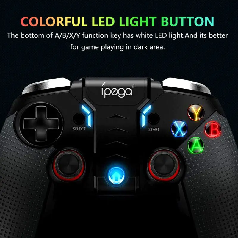 The bottom of A/B/X/Y function key has white LED light.And its better for game playing in dark area. Support TURBO(acceleration) function,make it stronger and more fast when playing games; Design with telescopic function,support mobile phone within 6.2 inches.