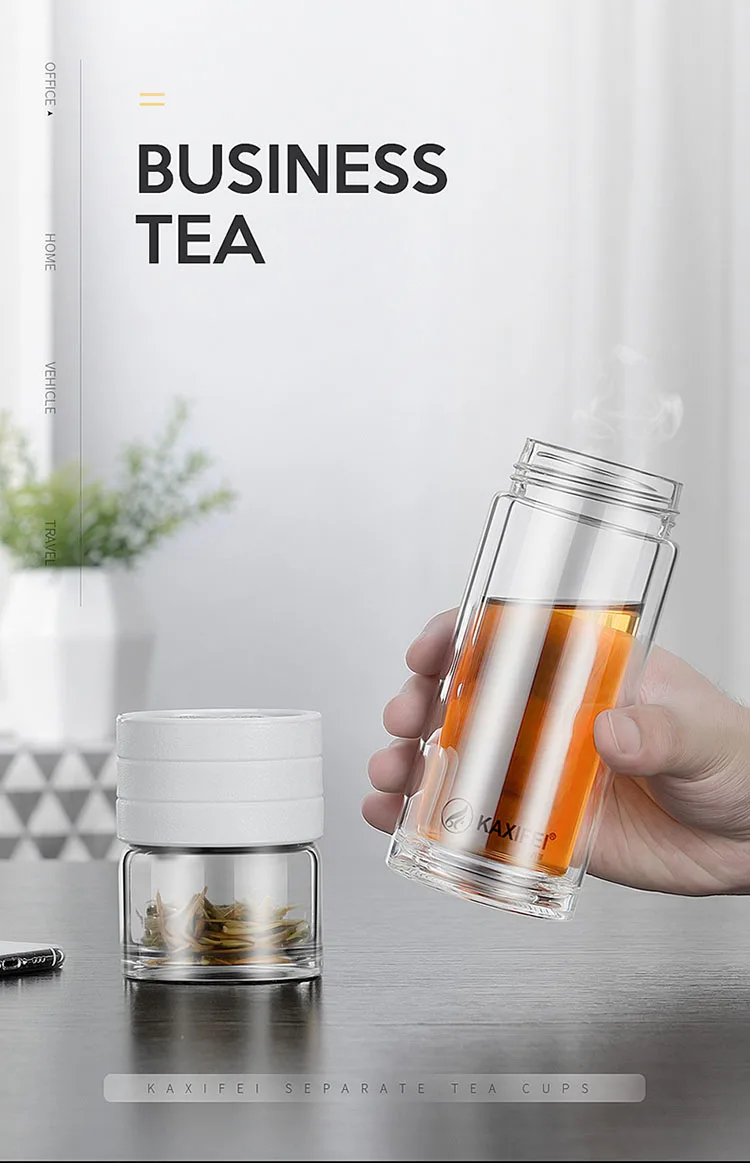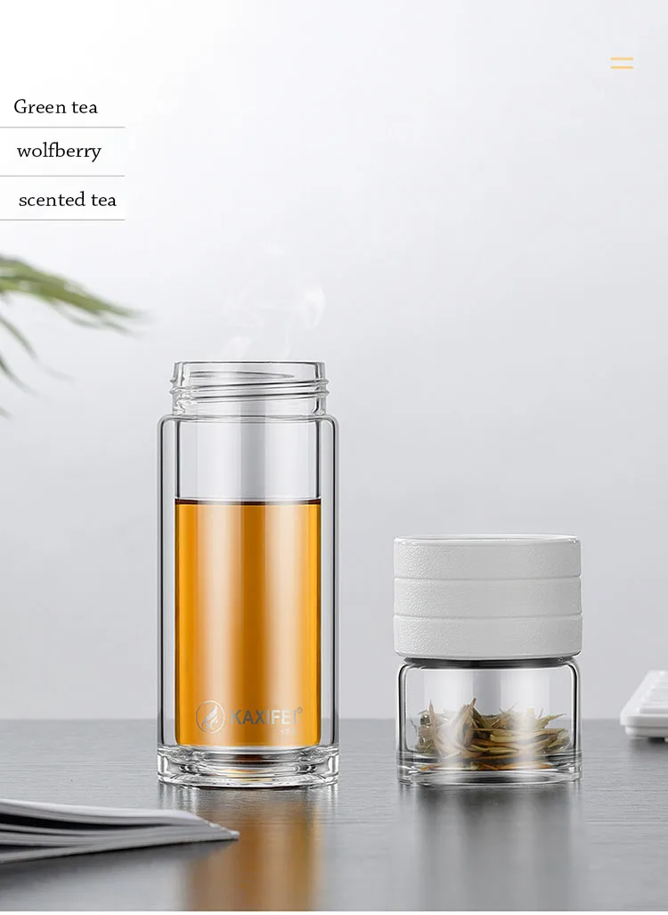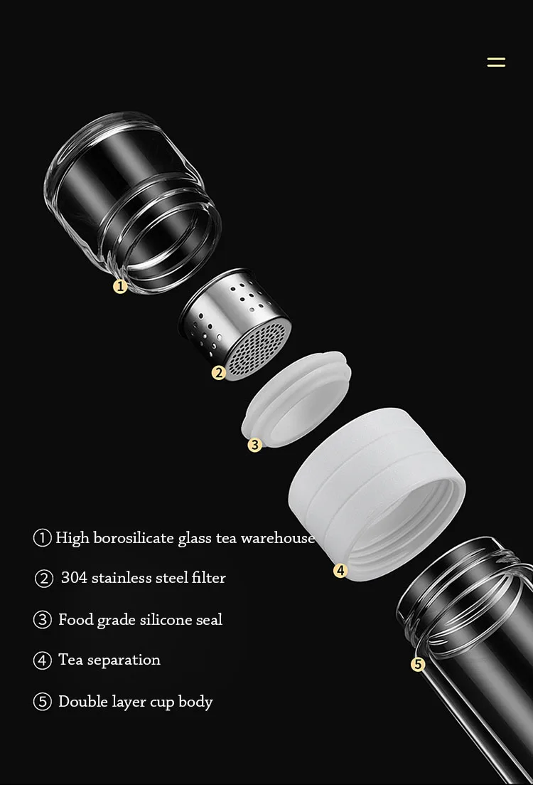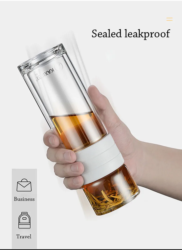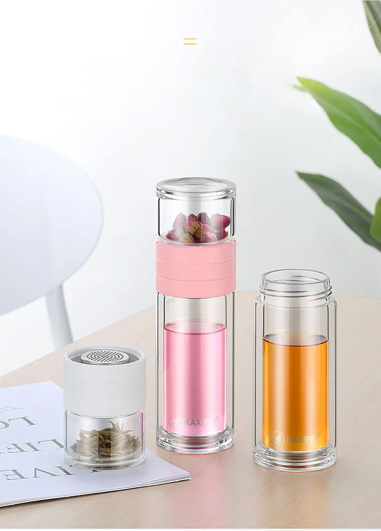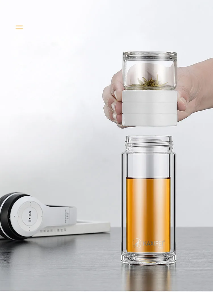 Стеклянная бутылка с двойными стенками 350 мл чашка для воды и чая заварником