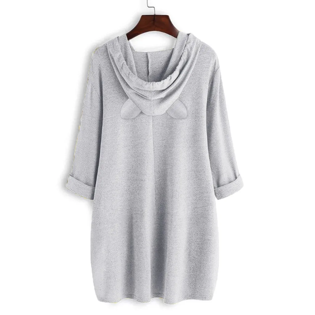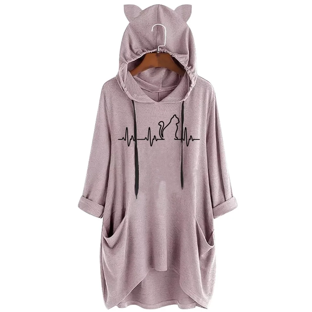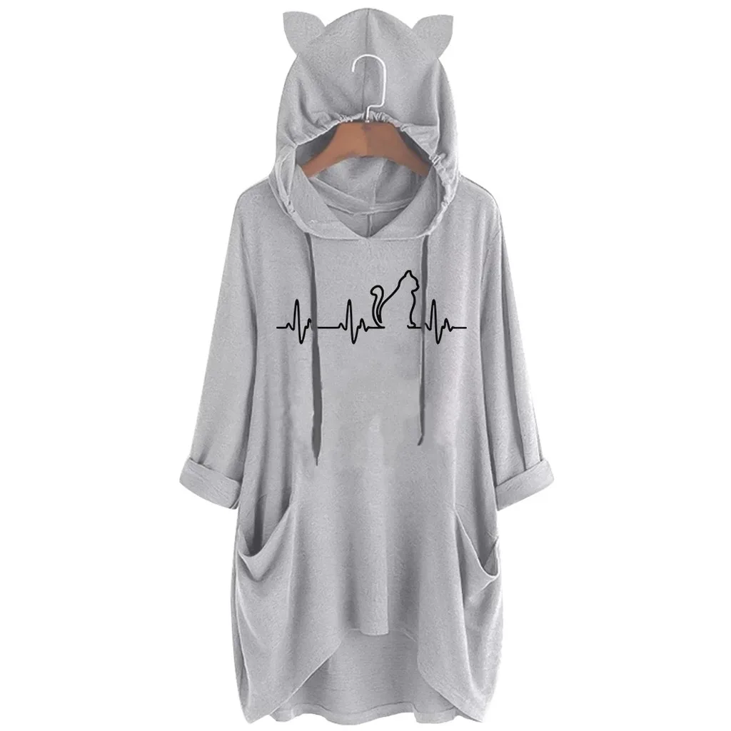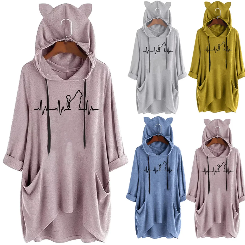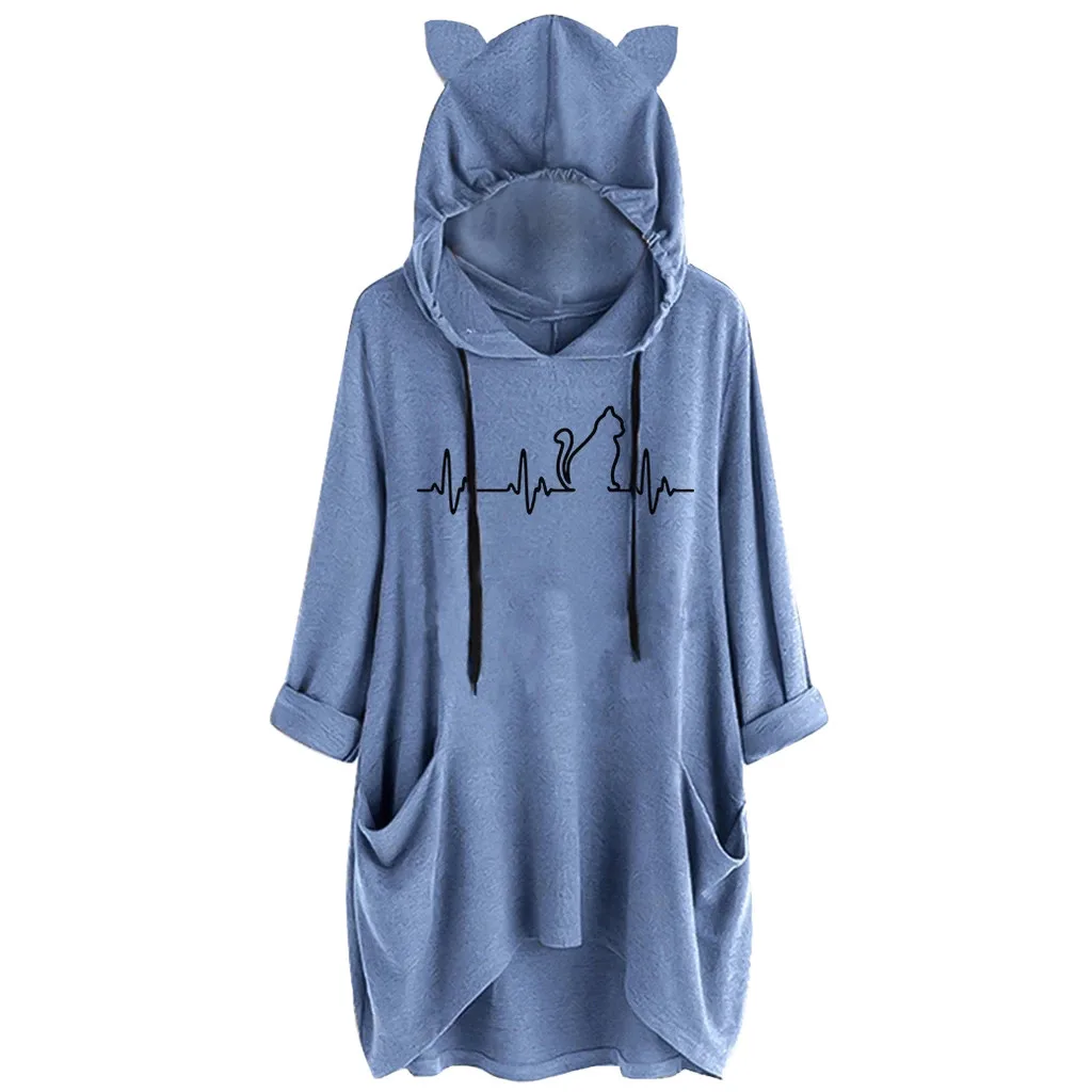 Женская Повседневная рубашка с длинным рукавом и капюшоном с принтом кота