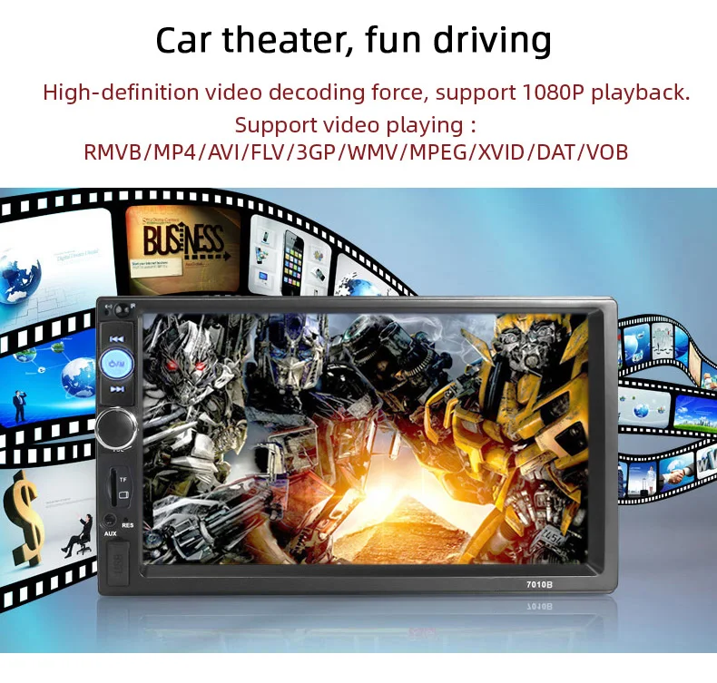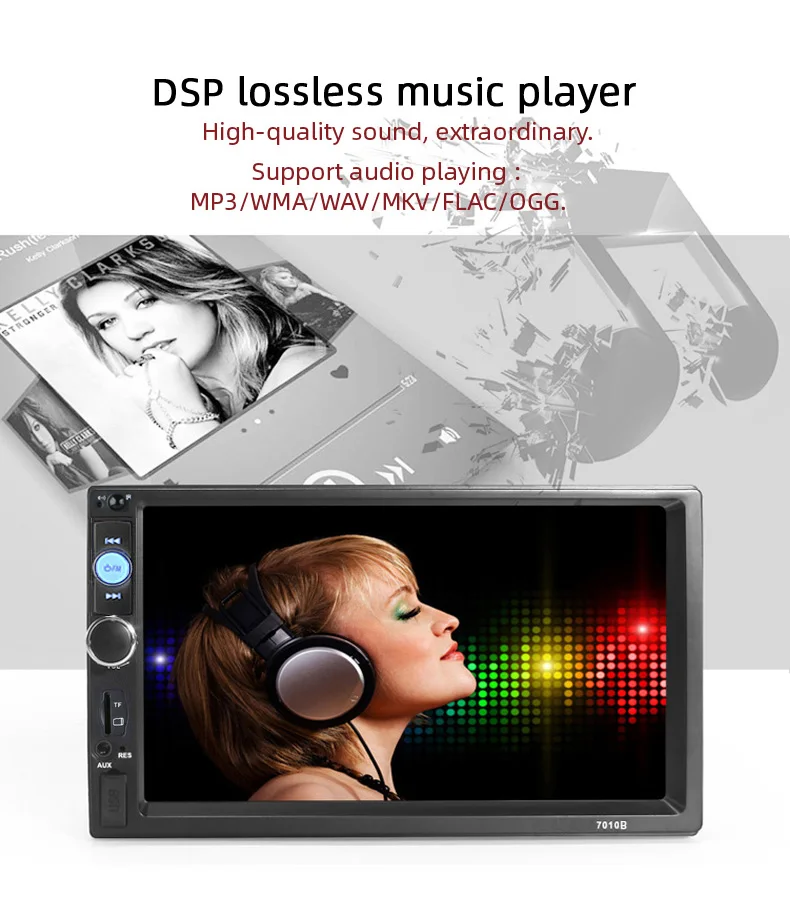 1. 7 дюймов hd-навигатор для автомобиля MP5 плеер с цифровым сенсорным экраном. 2. Поддержка Bluetooth громкой связи, bluetooth музыкальный плеер 3. Видео вход, может быть подключен к задней камере 4. 24Bit DAC, высокоточное снижение качества звука; 5. Поддержка аудио форматов APE, FLAC, WAV, DIS без потерь, Поддержка высокой скорости бит! Качество звука до уровня температуры CD; 6. Поддержка 24Bit 96 кГц WAV формат, более высокое разрешение музыки, чем CD; 7. Воспроизведение звука: DIS, MP3, WMA, ACC, OGG, WAV, RA, AC3, MP2, AMR и так далее. 8. Воспроизведение видео: AVI, MP4, FLV, PMP, RM, RMVB, MPG и другие форматы. 9. Подставка; картина для просмотра (JPEG и другие форматы) 10. Полнофункциональный пульт дистанционного управления.
