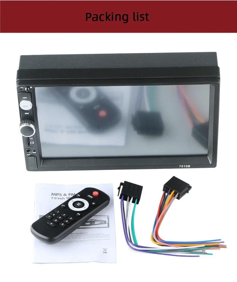 1 х Автомобильный MP5 плеер 1 х пульт дистанционного Управление Руководство пользователя (1 шт.) 1 х задняя камера (опционально) 1 х рулевое управление Rmote (опционально)