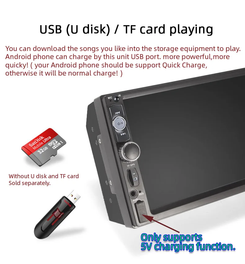 Это автомобильное радио не встроено и включает в себя любую карту памяти или sd-карту внутри. CD-плеер не доступен. Это не поддерживает CD/DVD проигрыватель. Это автомобильный Радио MP5 плеер поддерживает USB TF карту. И его качество музыки лучше, чем CD/DVD плеер Не поддерживает DVD формат Функция!