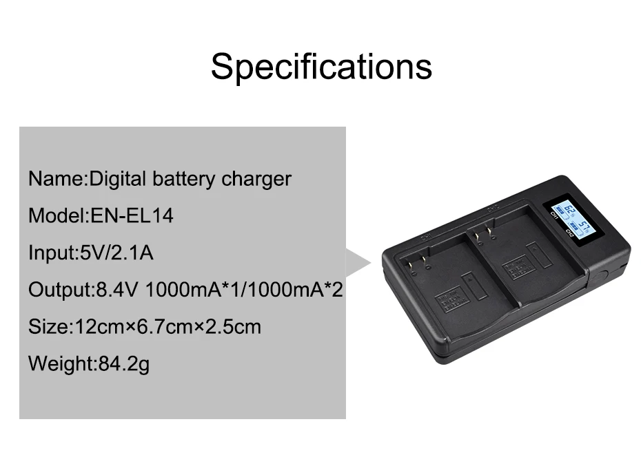 EN-EL14 EN-EL14a ENEL14 EL14 1200 мА/ч, replacemetn батарея для Nikon D3100. .. D3200. .. D3300. .. D3400. .. D5100 ... d5200. .. D5300. .. D5500 DF. .. Coolpix P7000. .. P7100. .. P7700. .. P7800 цифровых зеркальных камер