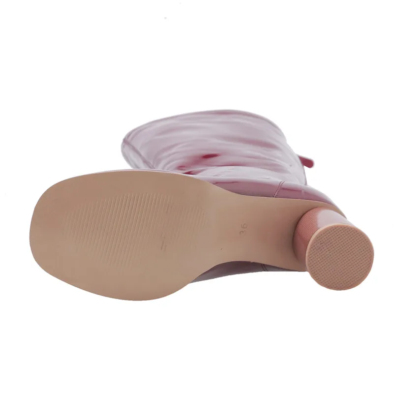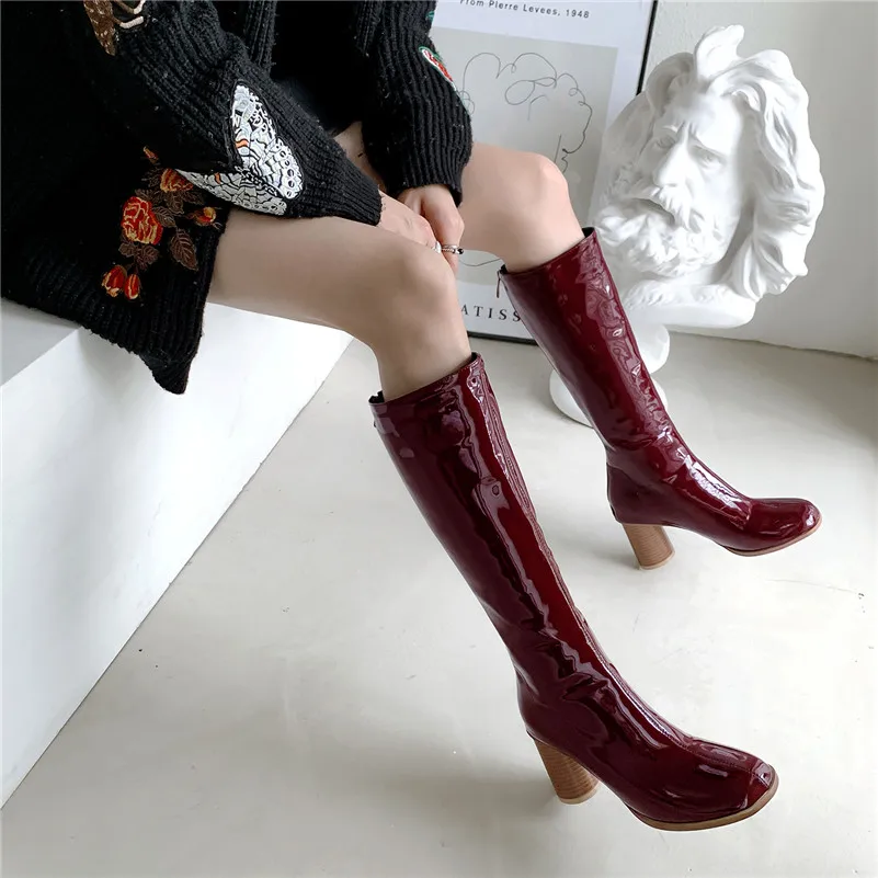 ANNYMOLI/зимние сапоги до колена женские высокие сапоги из лакированной кожи с круглым носком на высоком каблуке обувь на молнии с круглым носком Женская Осенняя обувь, размеры 34-46