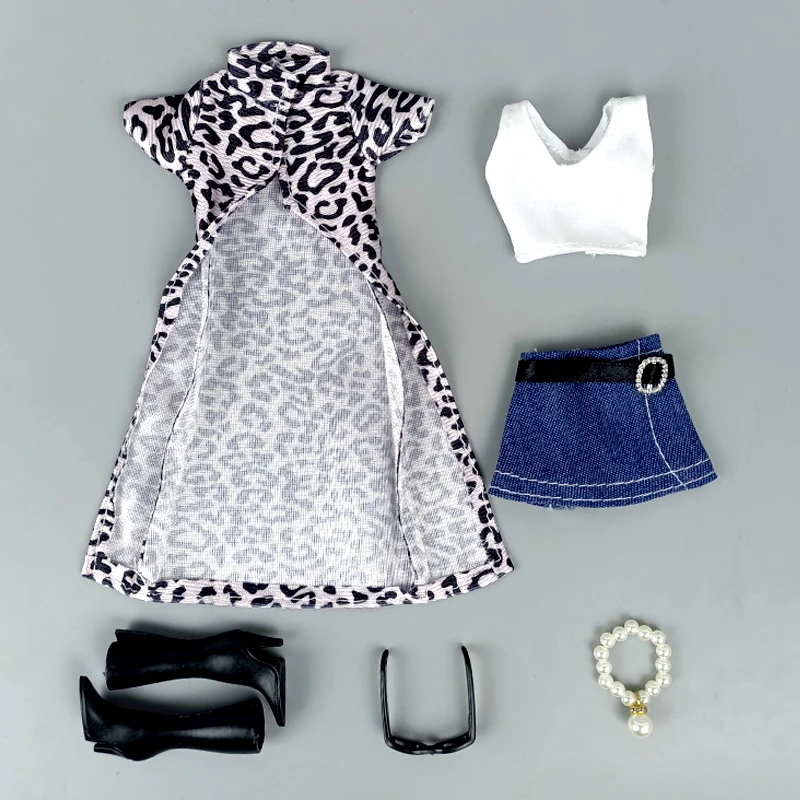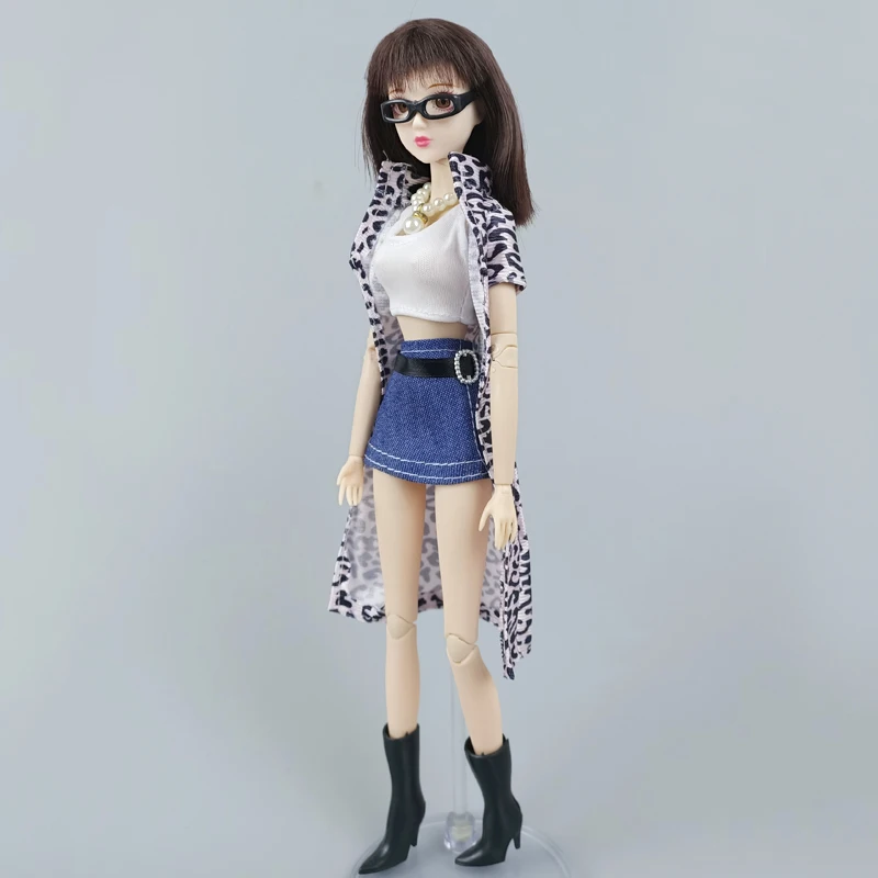 1 комплект 1/6 Куклы Аксессуары для куклы Барби наряды одежда для Барби леопард длинное пальто и жилет и юбка ожерелье с обувью очки