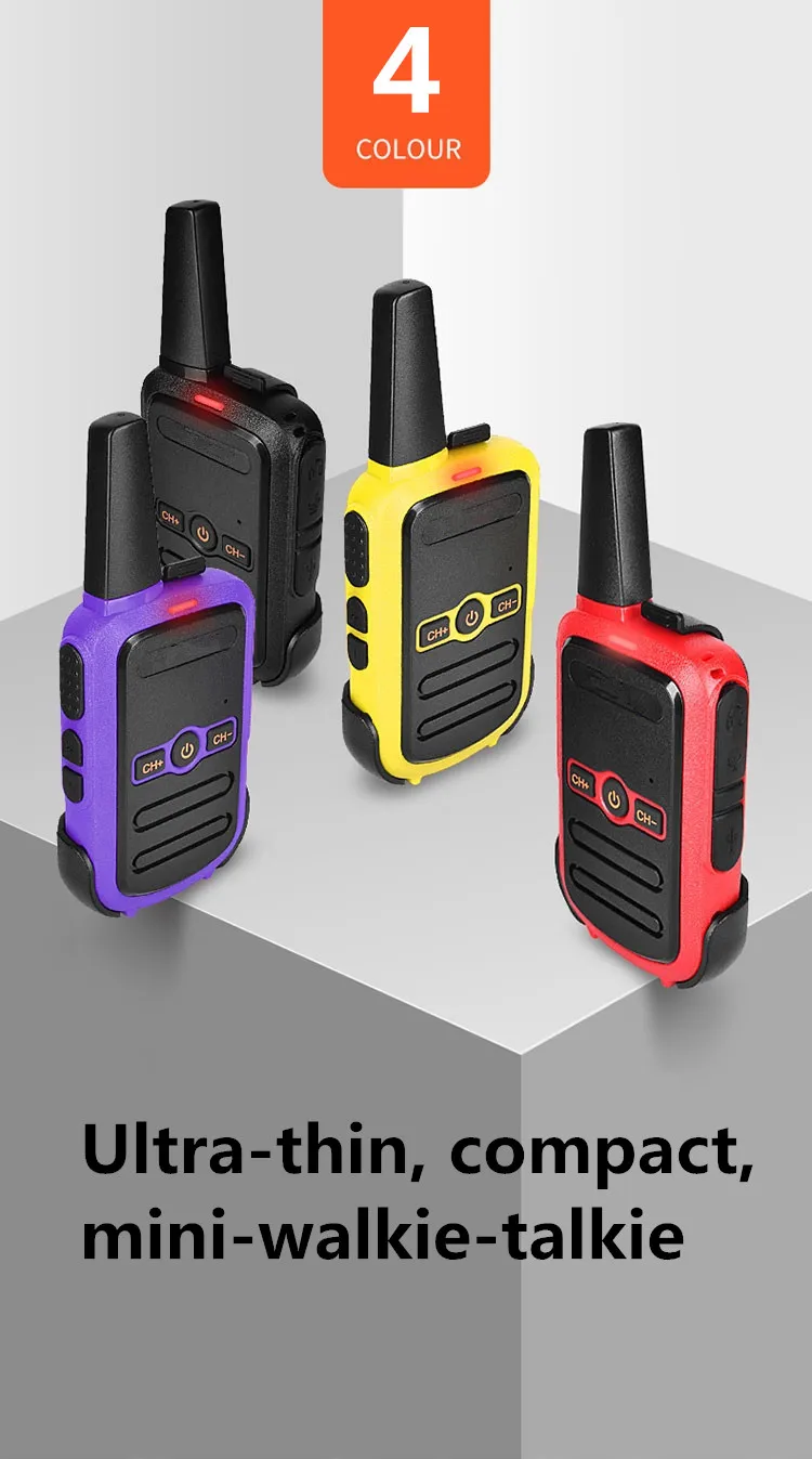 Название: мини-рация 2 шт. Цвет: черный, красный, желтый, фиолетовый Характеристики: правила США, европейские правила Входное напряжение: 3,7 В Выходная мощность: 5 Вт Максимальное расстояние: 1-5 км Диапазон каналов: 400-470 (МГц) Тип батареи: 1500 мАч литиевая батарея Количество каналов: 16 Размер изделия: 136*59*21 мм Список: рация (внутренний аккумулятор) * 2 шт., зарядное устройство * 1, линия передачи данных * 1, Задний зажим * 1, руководство * 1
