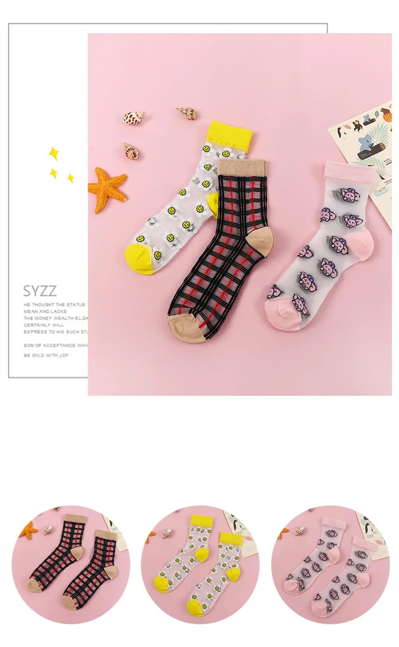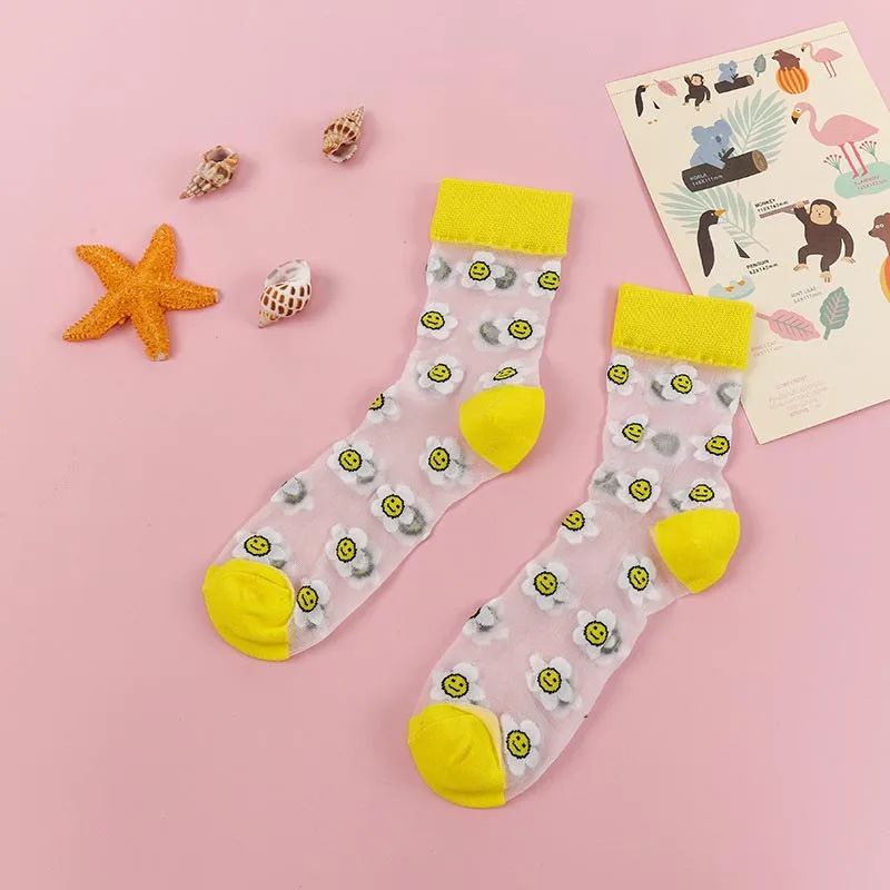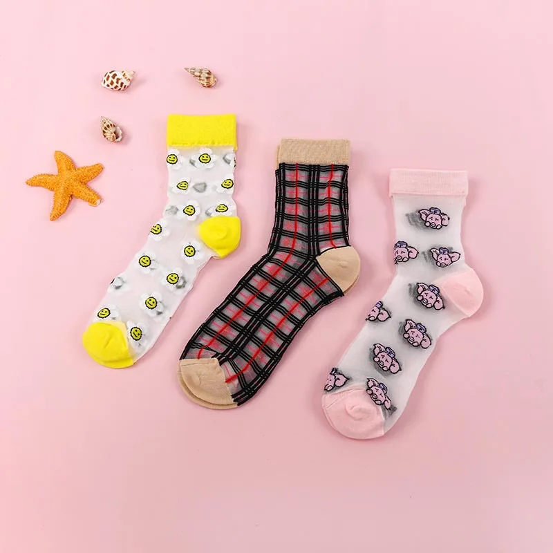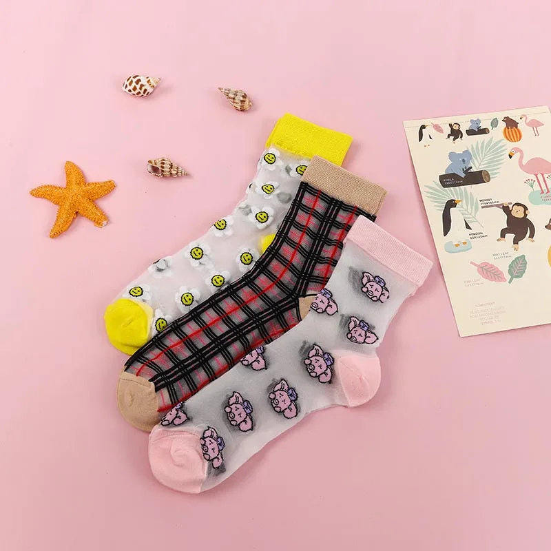 Корейские стильные шелковые забавные Женские носочки, милые тонкие дышащие женские носки с изображением мультяшного стекла, Kawaii Pig, со смайликом